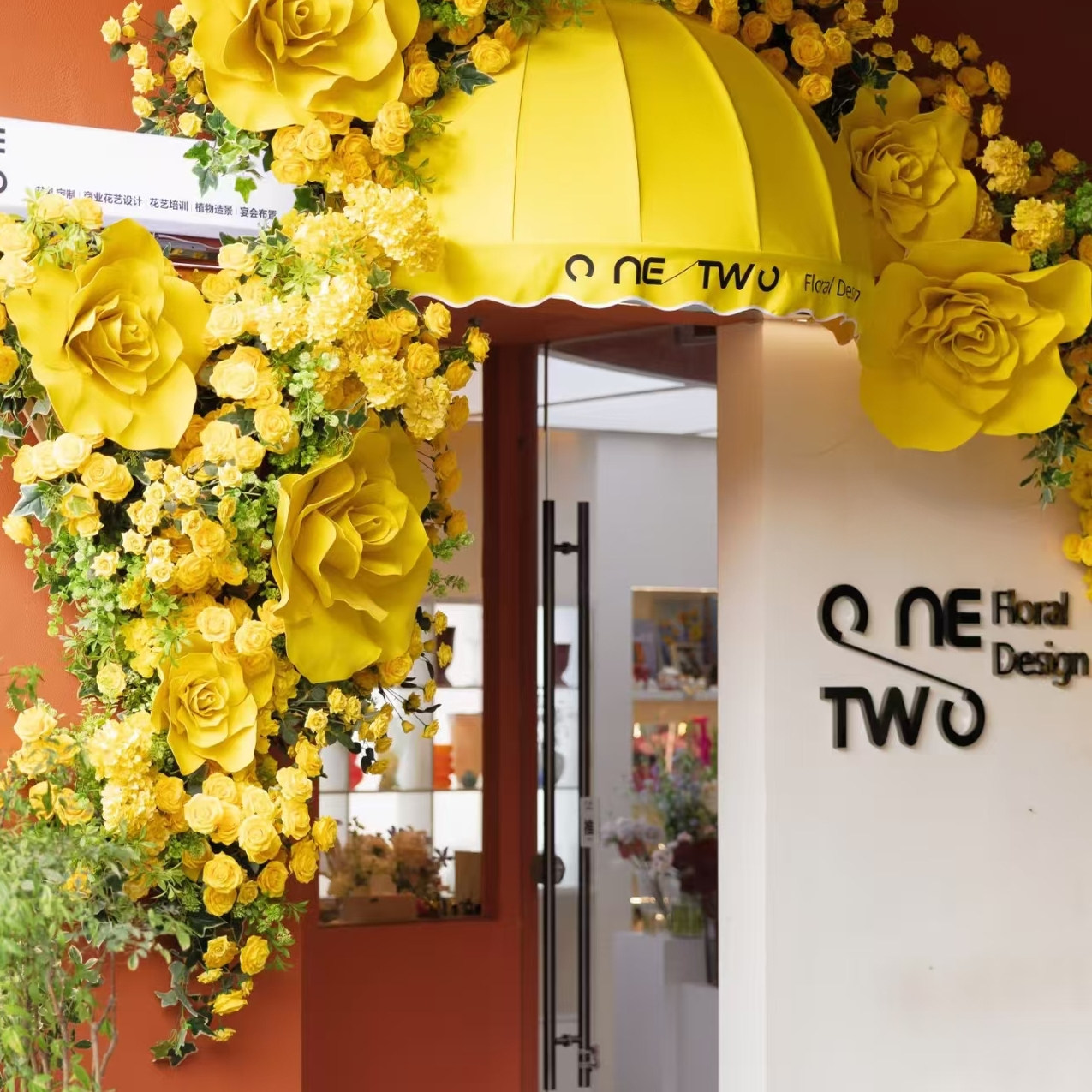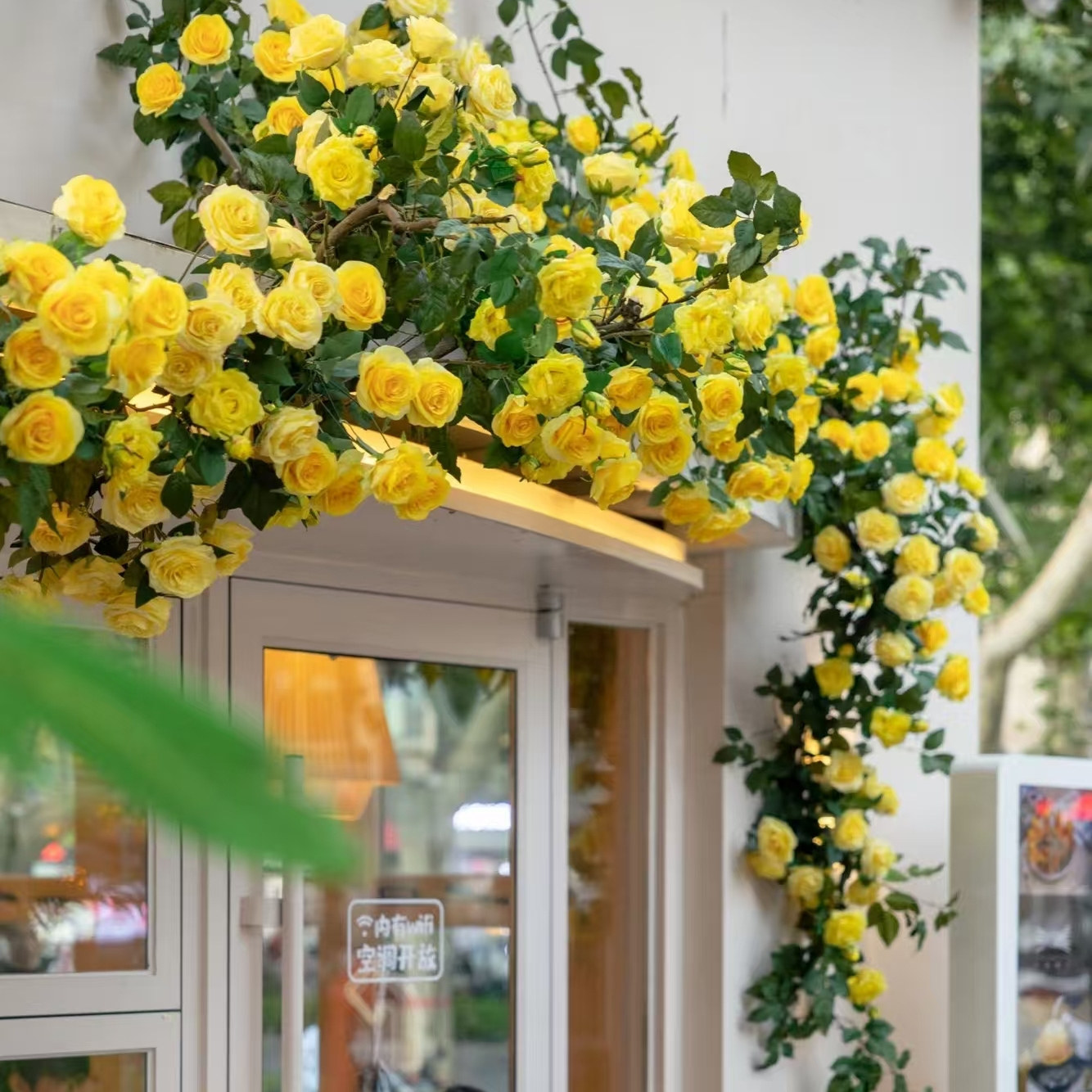 网红黄玫瑰花墙仿真花藤餐民宿景区造景装饰花艺有幸小食院大玫瑰