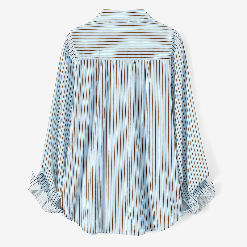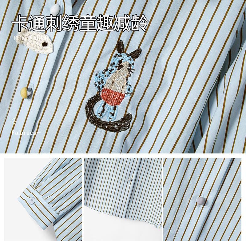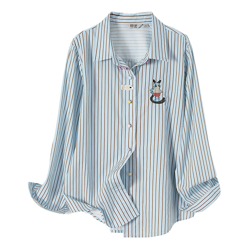 她池翻领衬衫2025秋装新款女装青春减龄绣花撞色条纹单排扣上衣