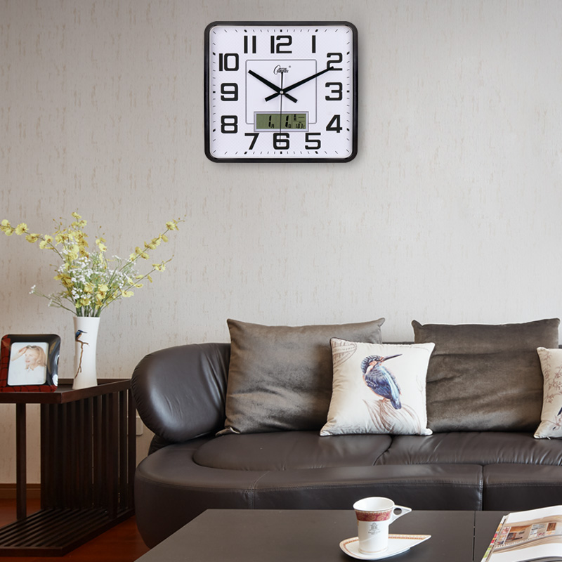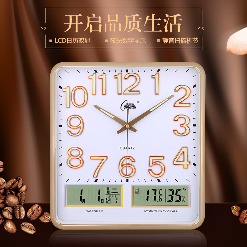 康巴丝方形挂钟表客厅时钟现代简约静音石英钟创意大气日历万年历