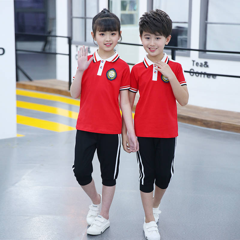 小学生校服黄色儿童班服夏季幼儿园园服红色夏装短袖七分裤子套装