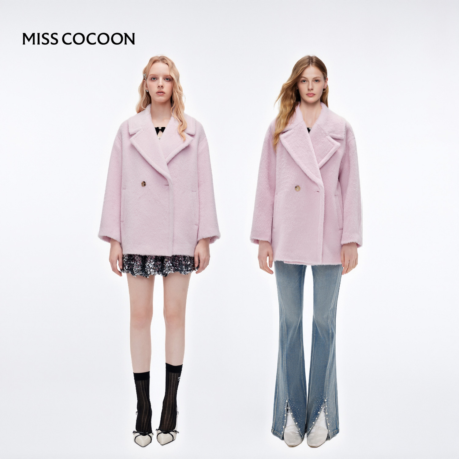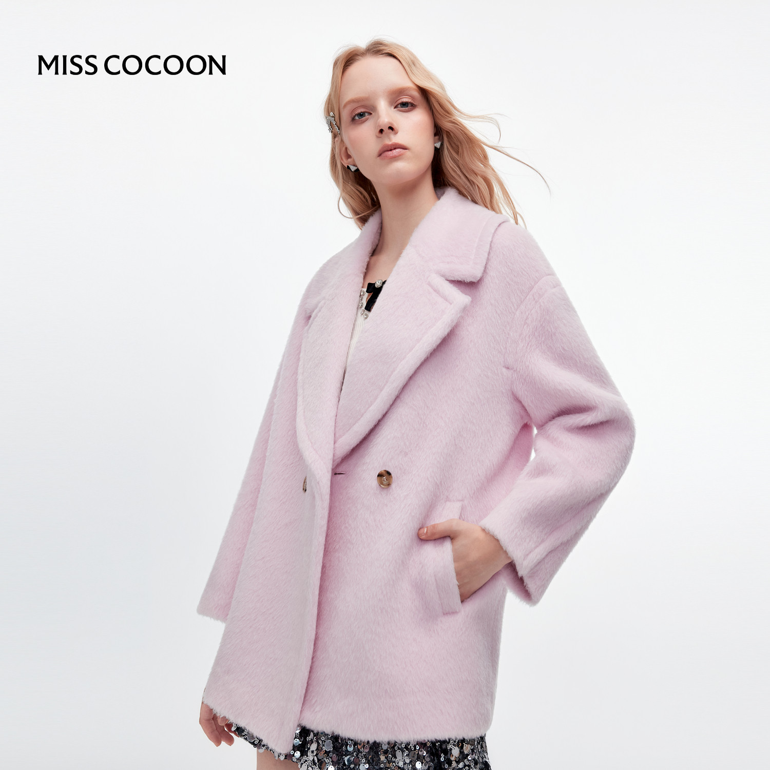 MISSCOCOON可可尼西装领毛呢外套女2025秋冬新款A版型绵羊毛大衣
