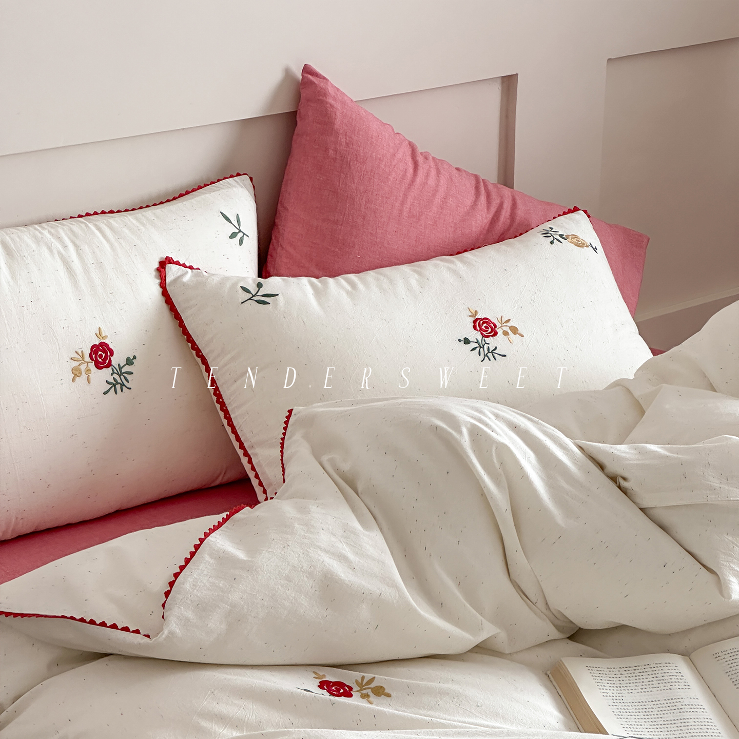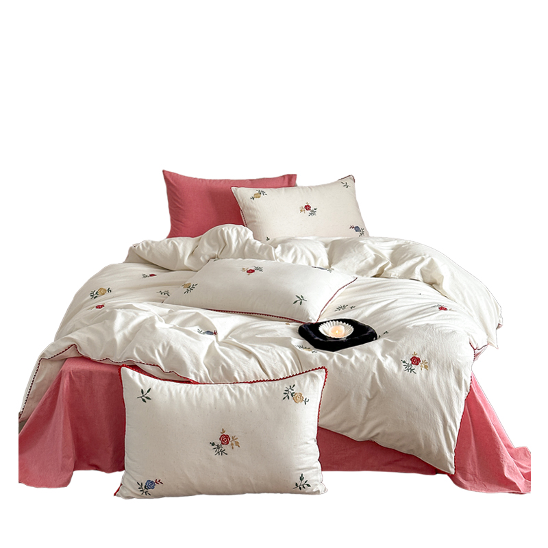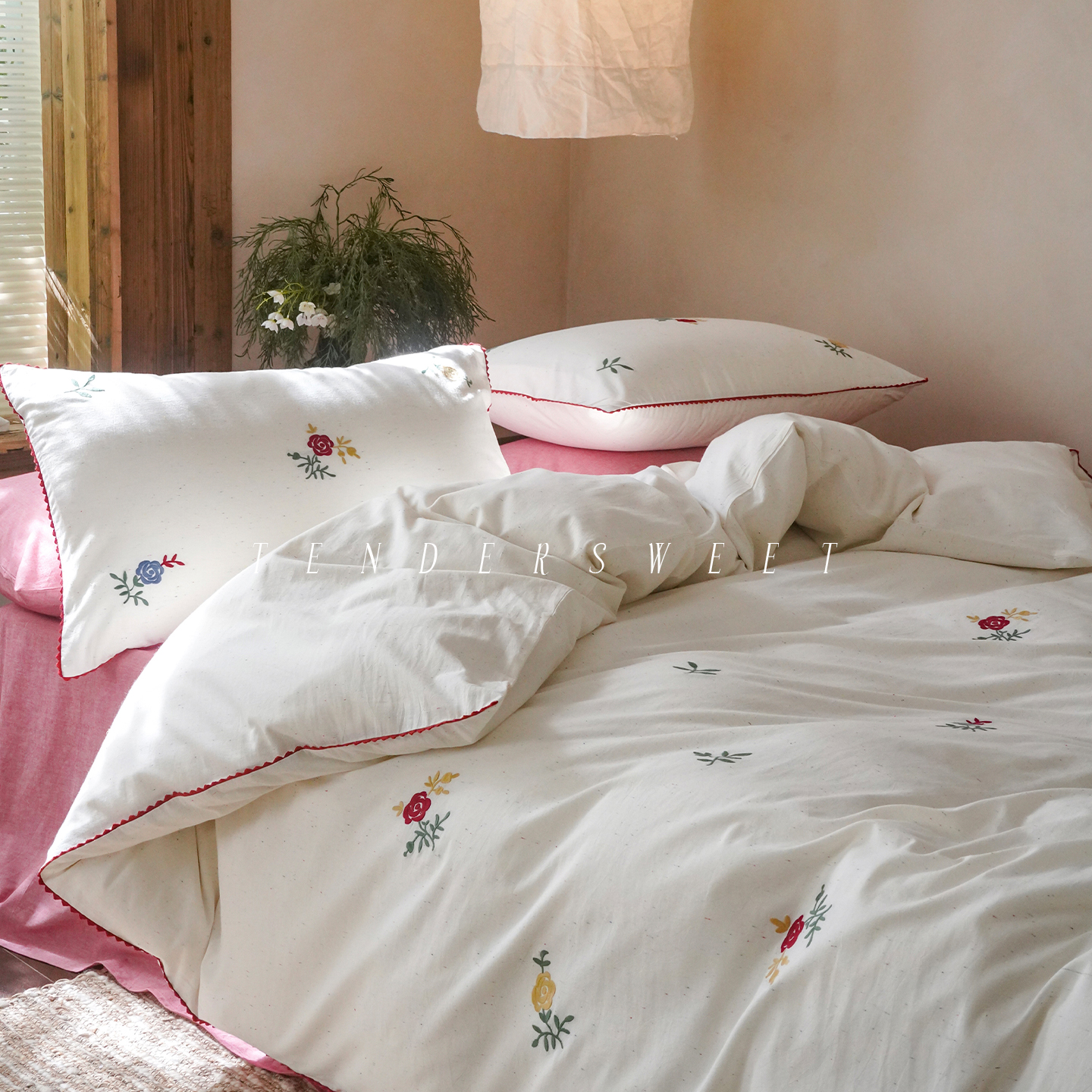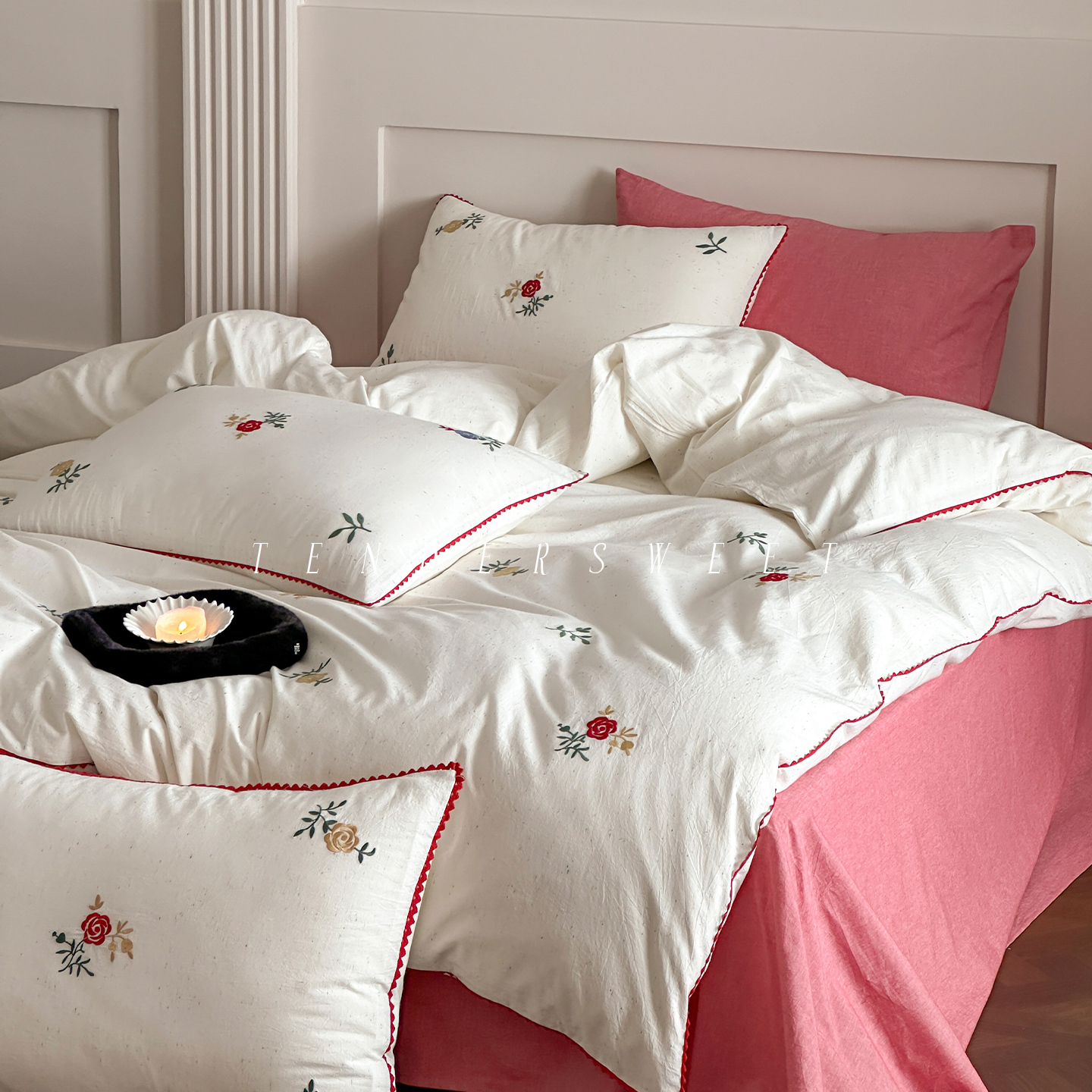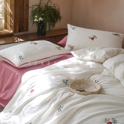 Tender| 法式少女小清新全棉色织四件套刺绣纯棉水洗棉秋床上用品