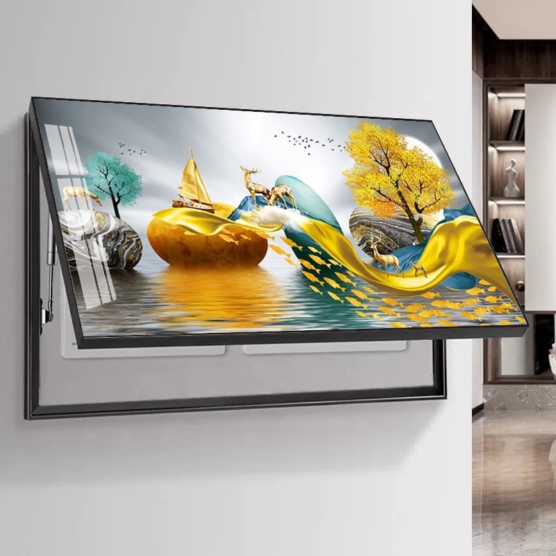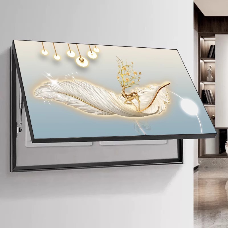 客厅电表箱装饰画配电箱打孔羽毛餐厅挂画现代背景墙简约轻奢壁画