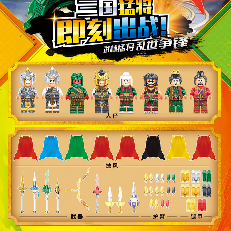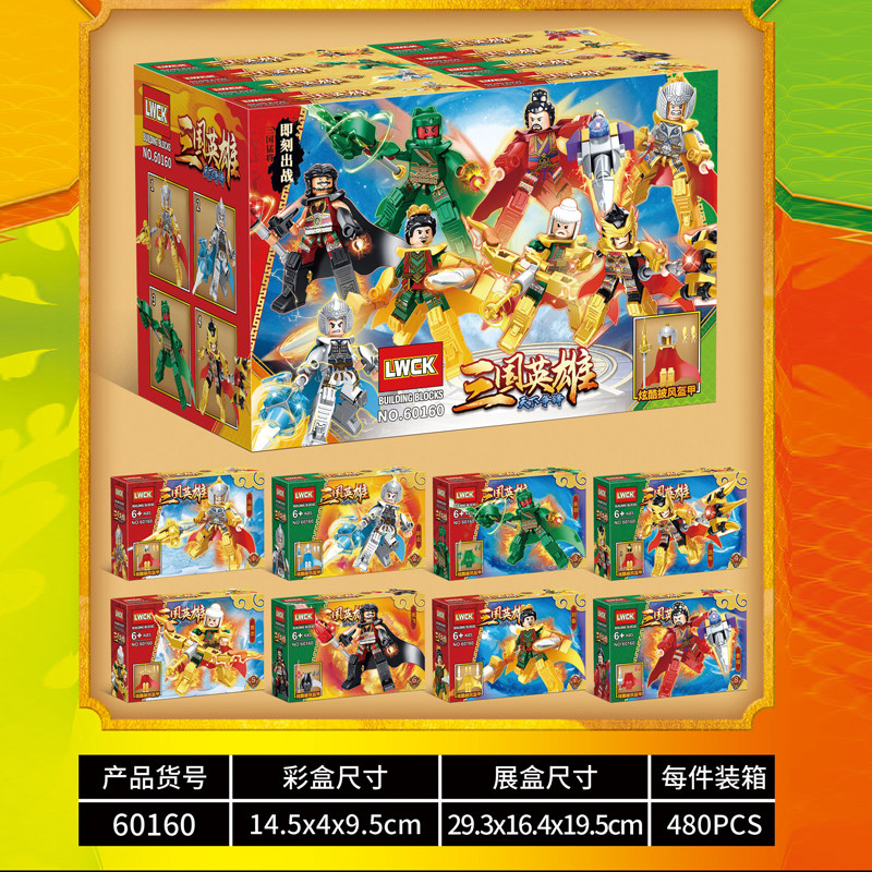 乐玩60160多关节拼装积木三国英雄玩具公仔关羽刘备吕布赵云张飞