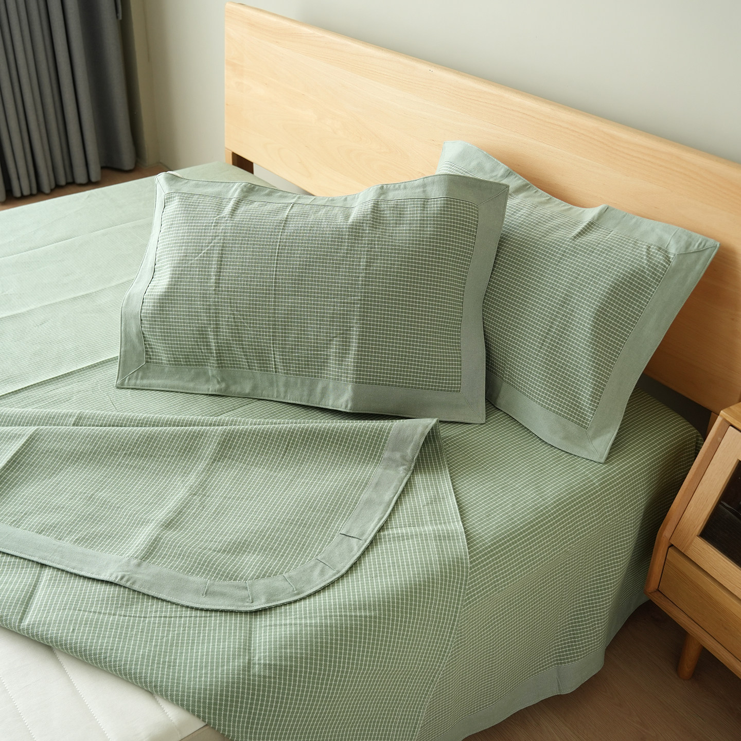 老粗布床单枕套三件套凉席夏季