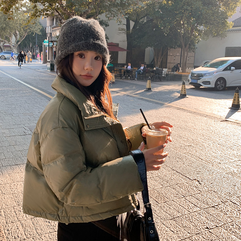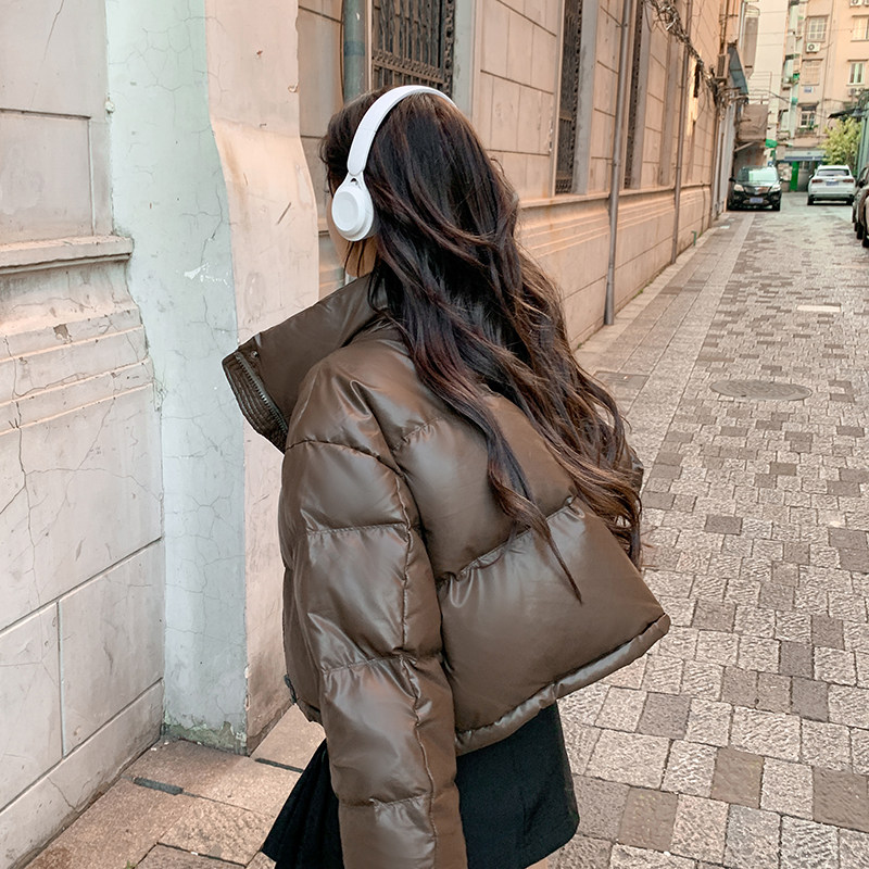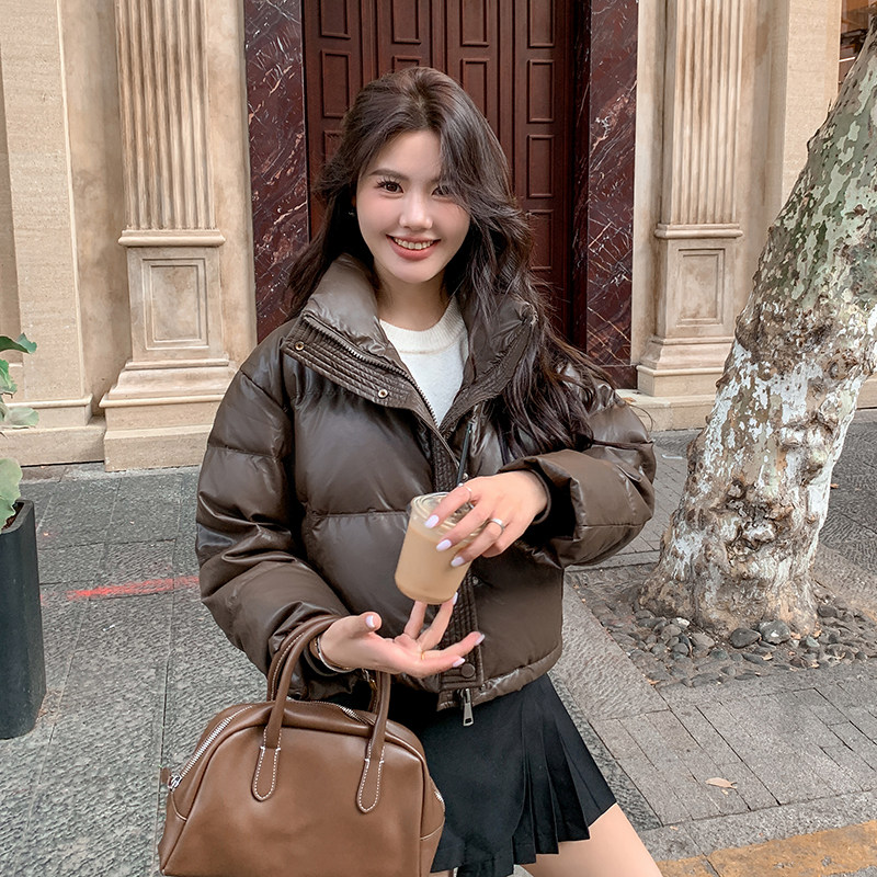 高级感立领PU皮衣短款羽绒服女2025冬季新款欧美肯豆风时尚外套女