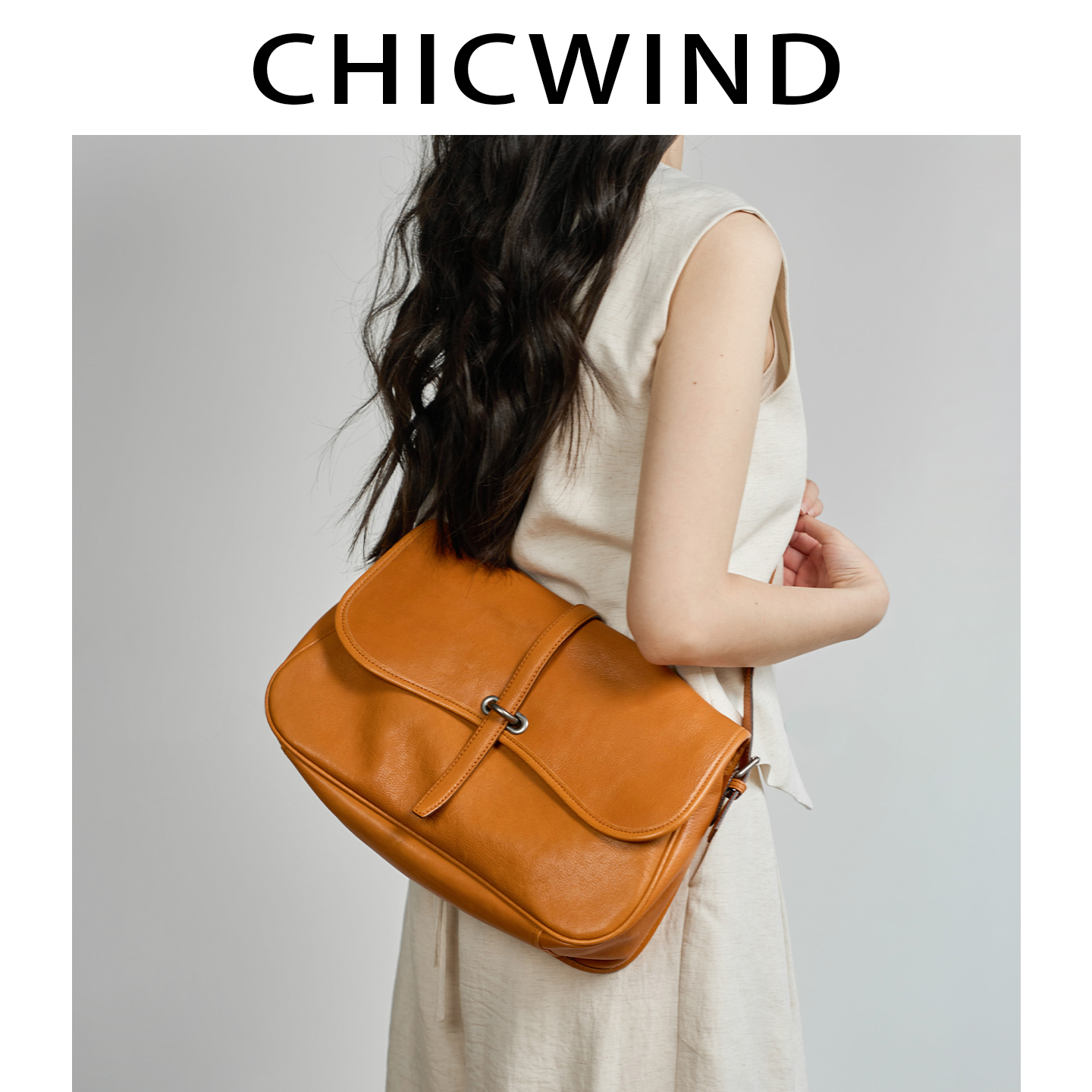 CHICWIND植鞣牛皮通勤真皮包包小众设计复古邮差包女单肩斜挎包