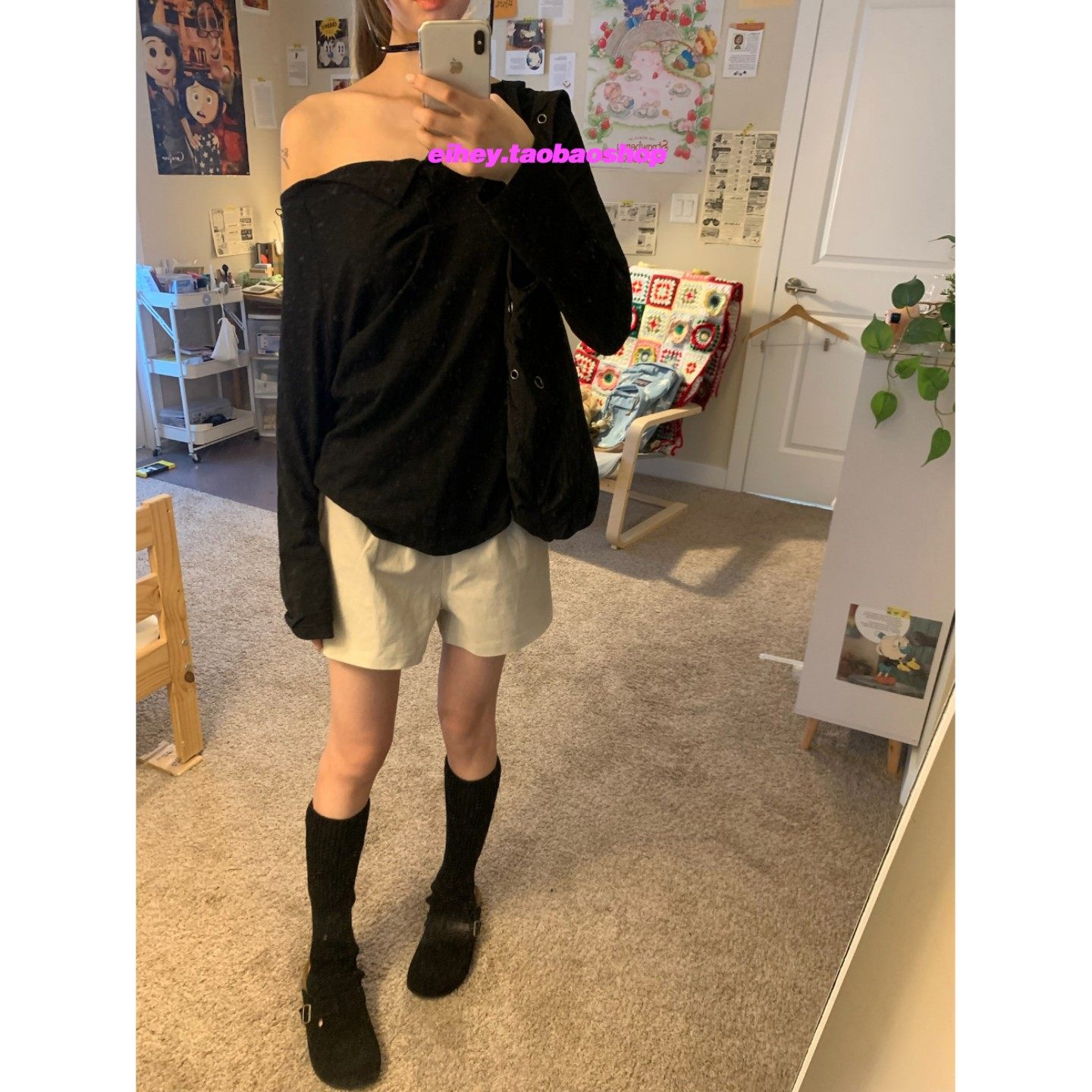 eihey诶嘿2026秋斜肩露肩宽松长袖衬衫女设计感通勤高级感上衣女