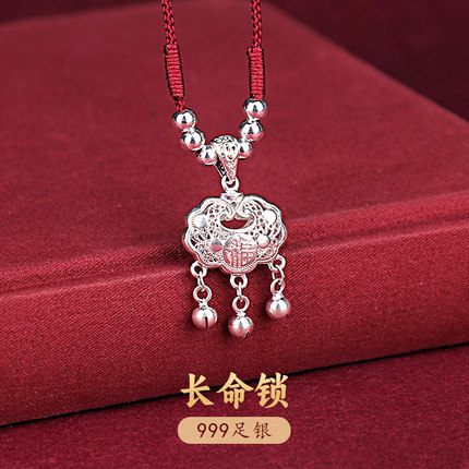 999纯银长命锁宝宝婴儿童银锁吊坠平安足银项链新生儿满月礼物女