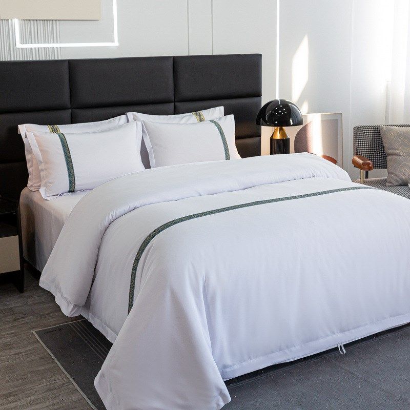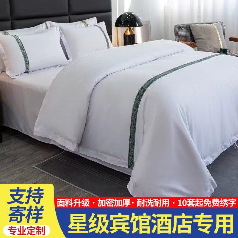 酒店床上用品四件套宾馆民宿三件套加厚纯白色床单被套全套