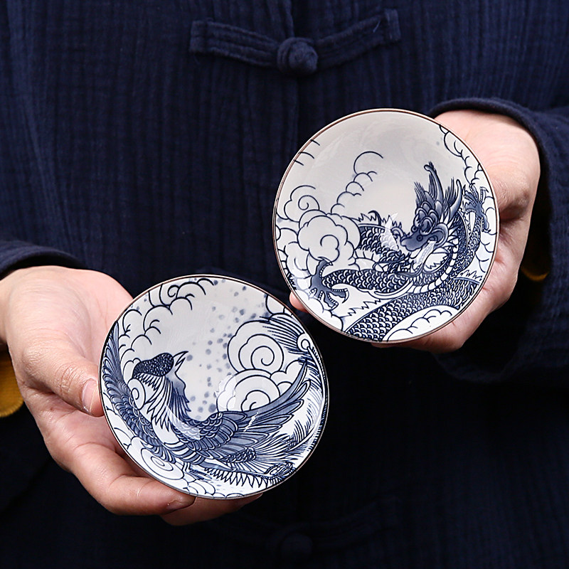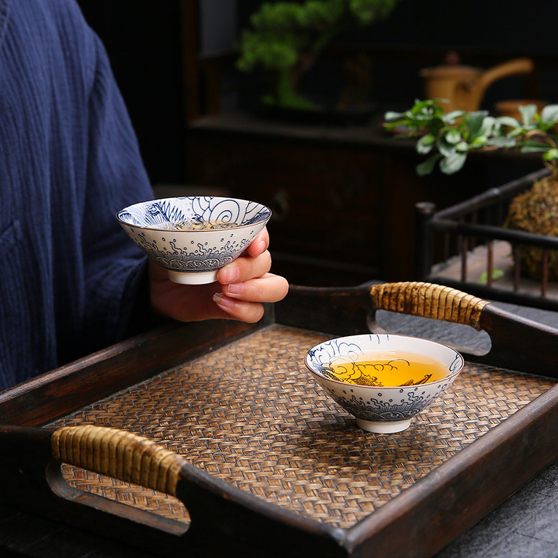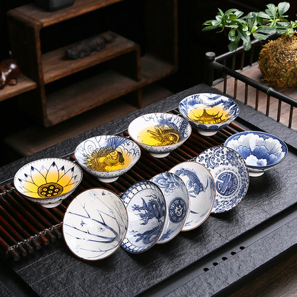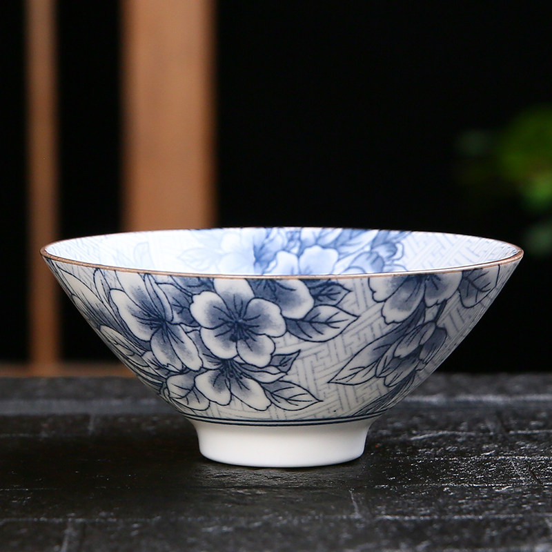 釉下彩青花瓷茶杯大号主人杯子品茗杯斗笠杯薄胎陶瓷功夫茶碗茶盏