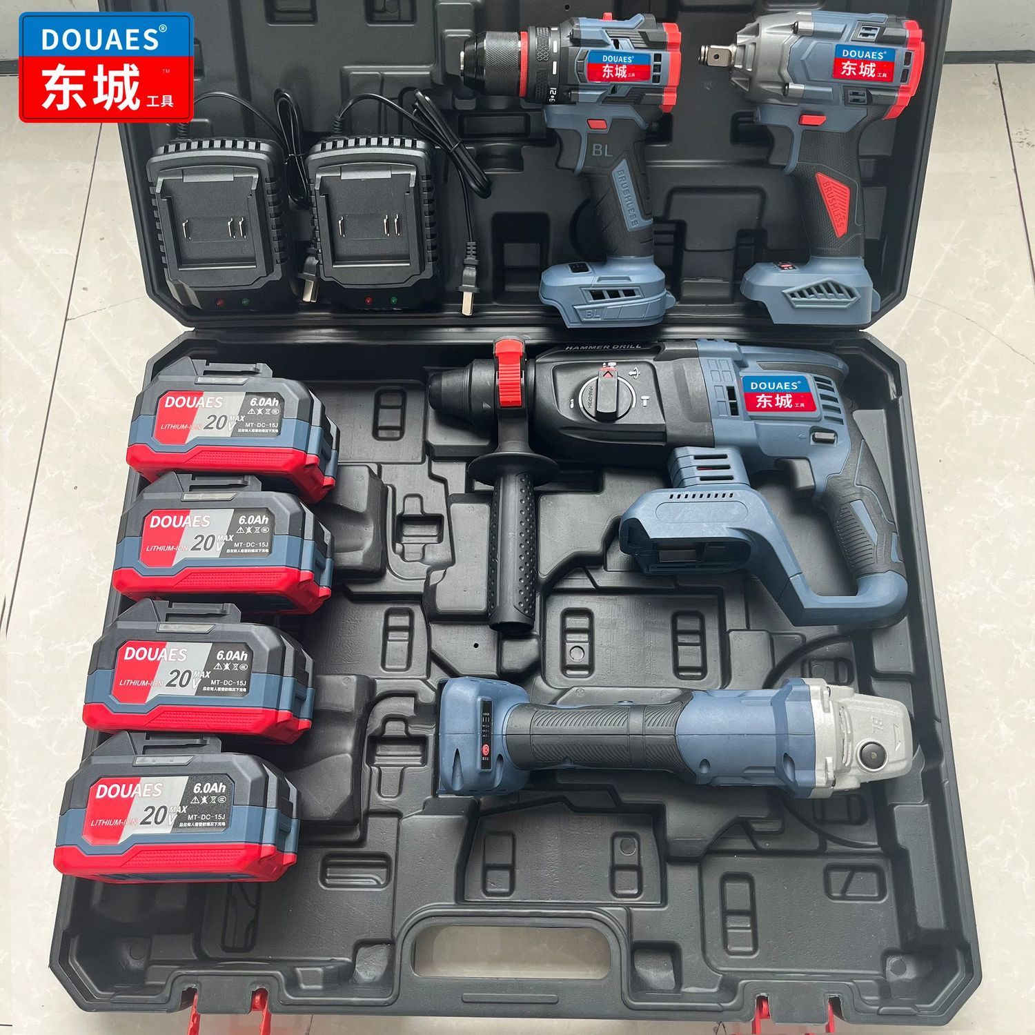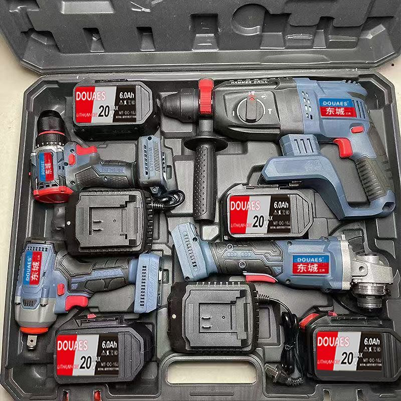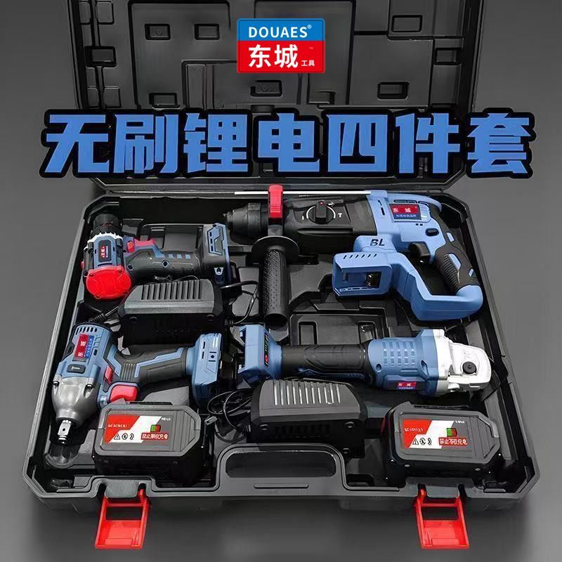 东城款无刷电动工具冲击钻充电电锤角磨机电动扳手电钻四件套装