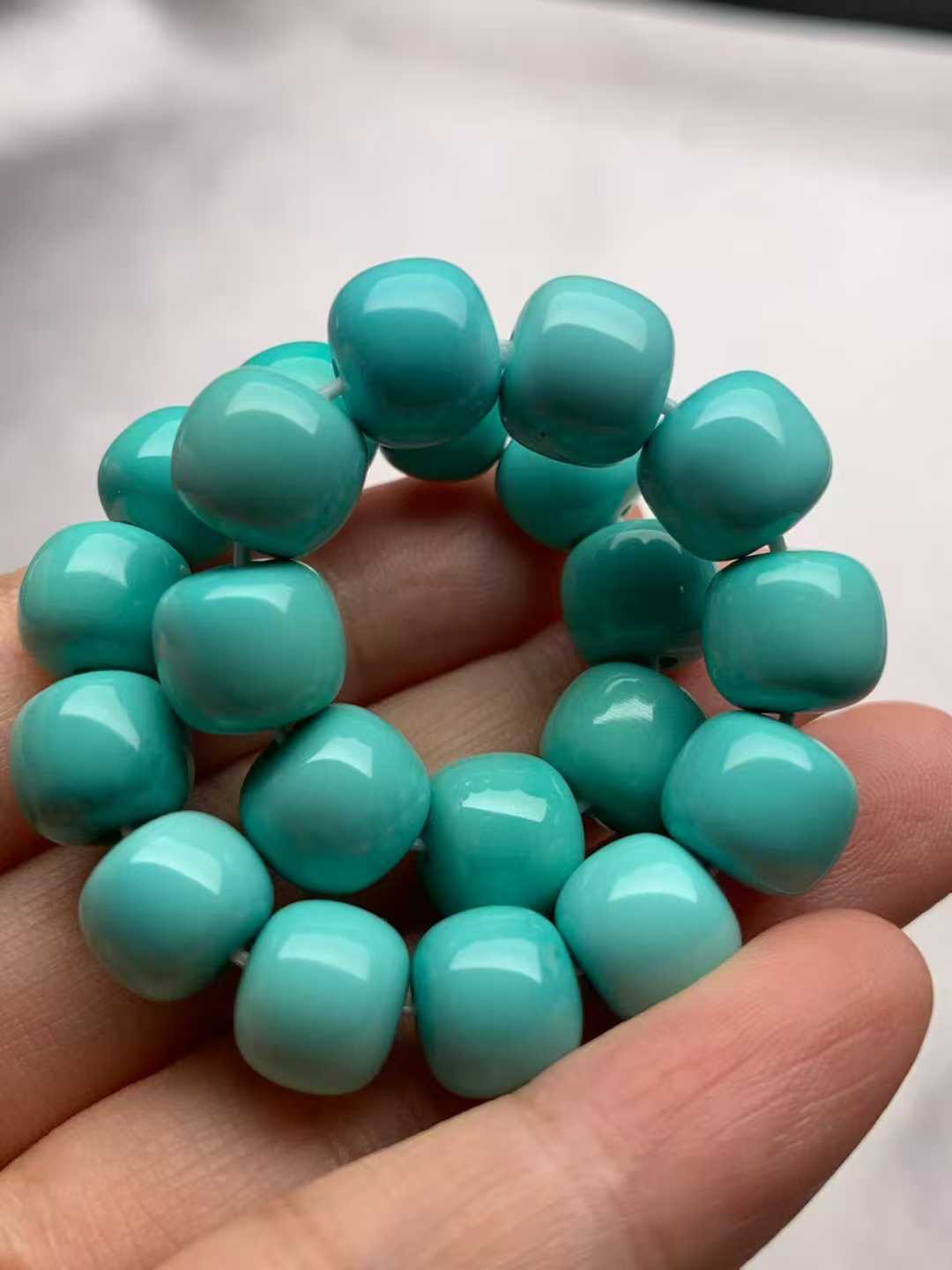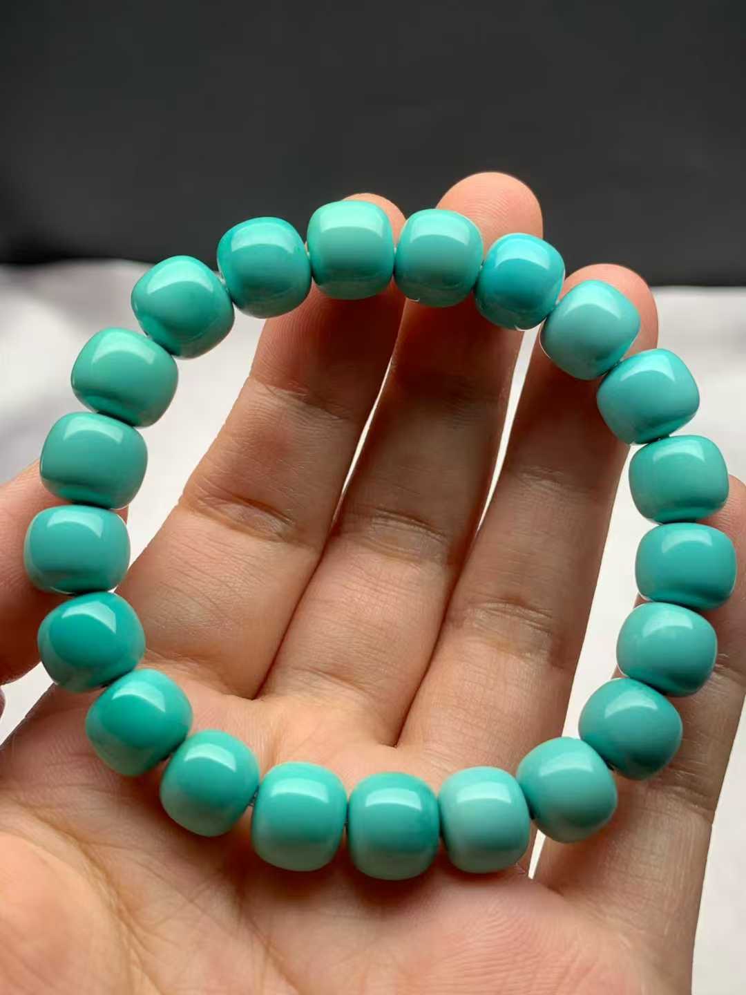 湖北十堰天然原矿高瓷绿松石精品老型手串男女款单圈收藏级