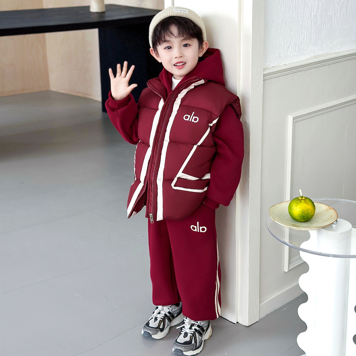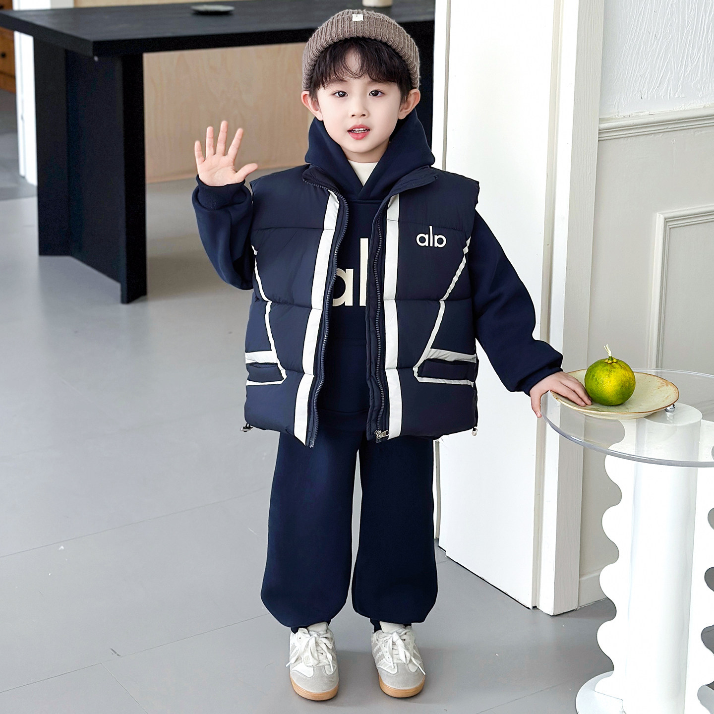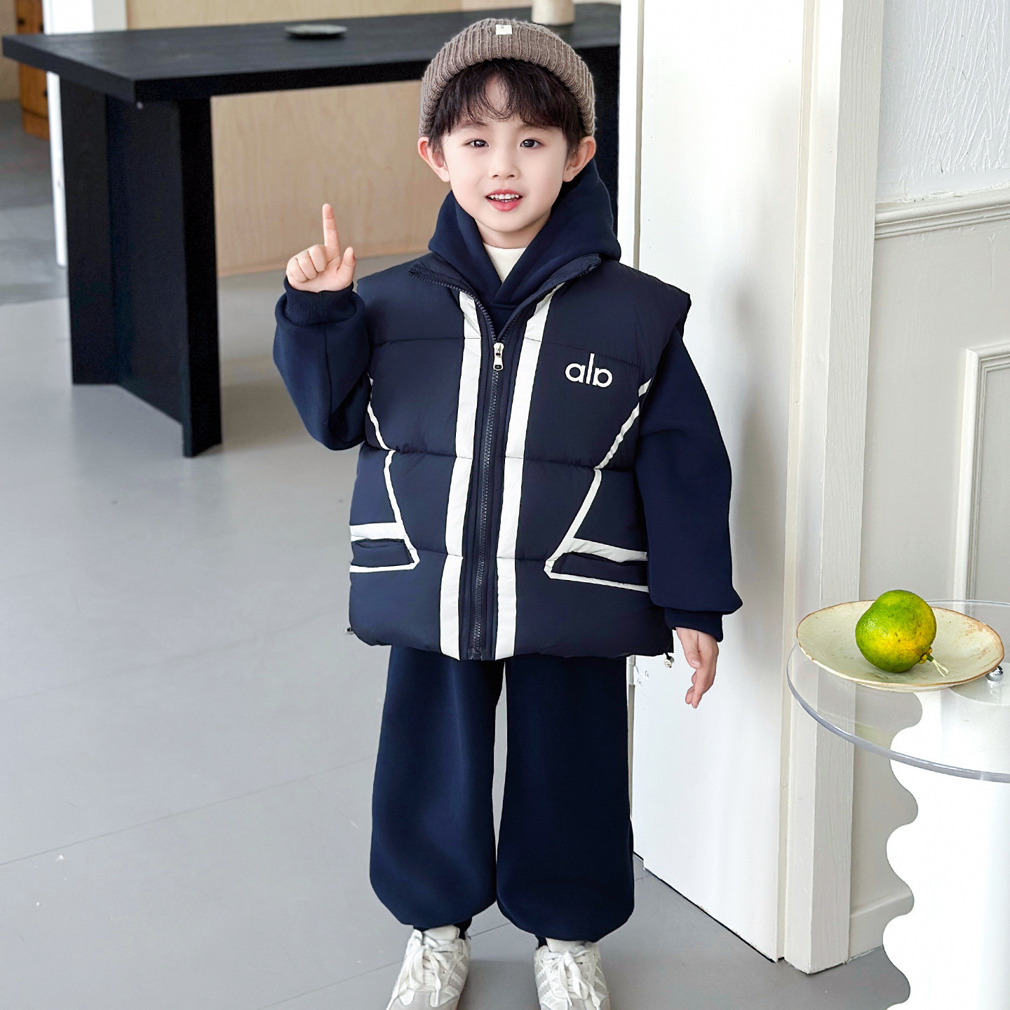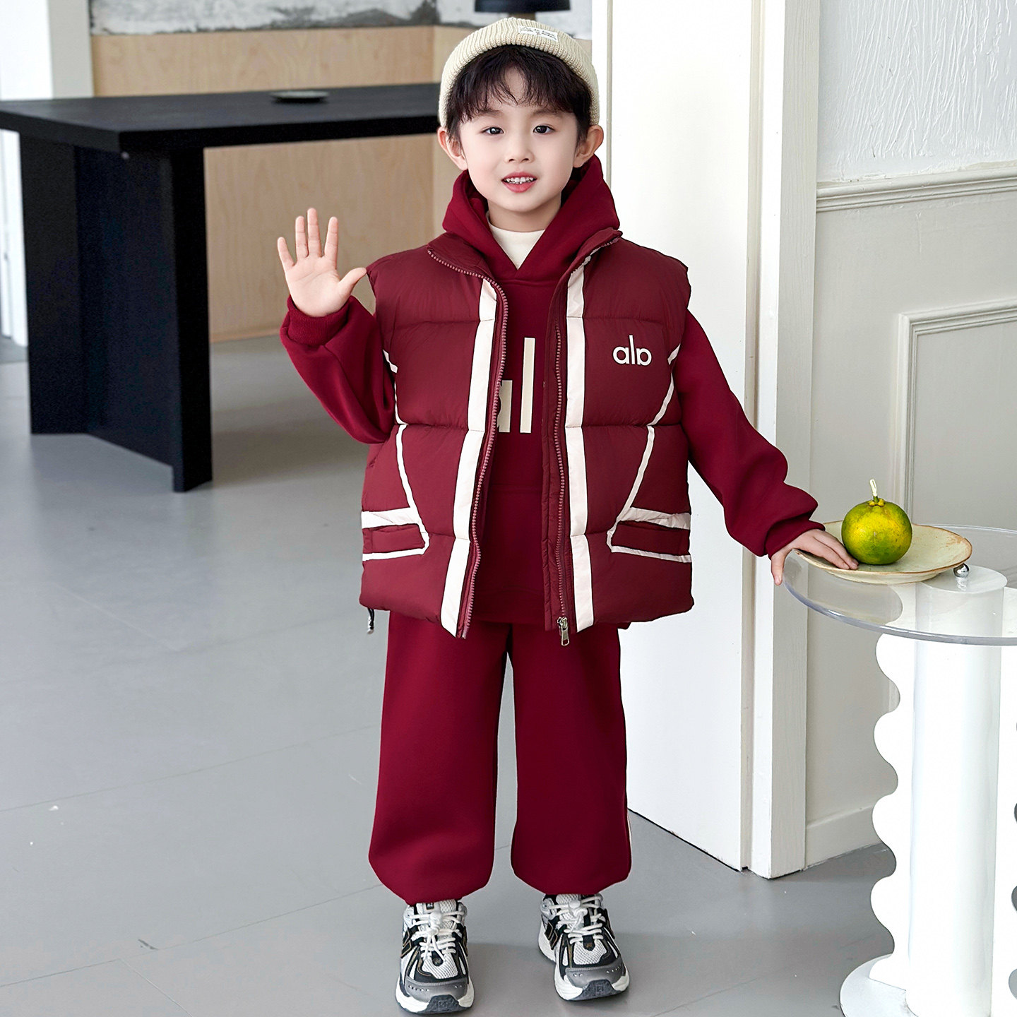 男童冬季加绒套装2025新款儿童洋气加厚冬装宝宝韩版马甲三件套潮