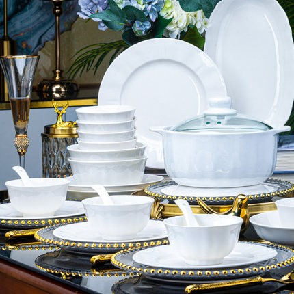 釉下彩2025新款碗碟套装家用中式乔迁餐具纯白陶瓷器碗筷盘子高温