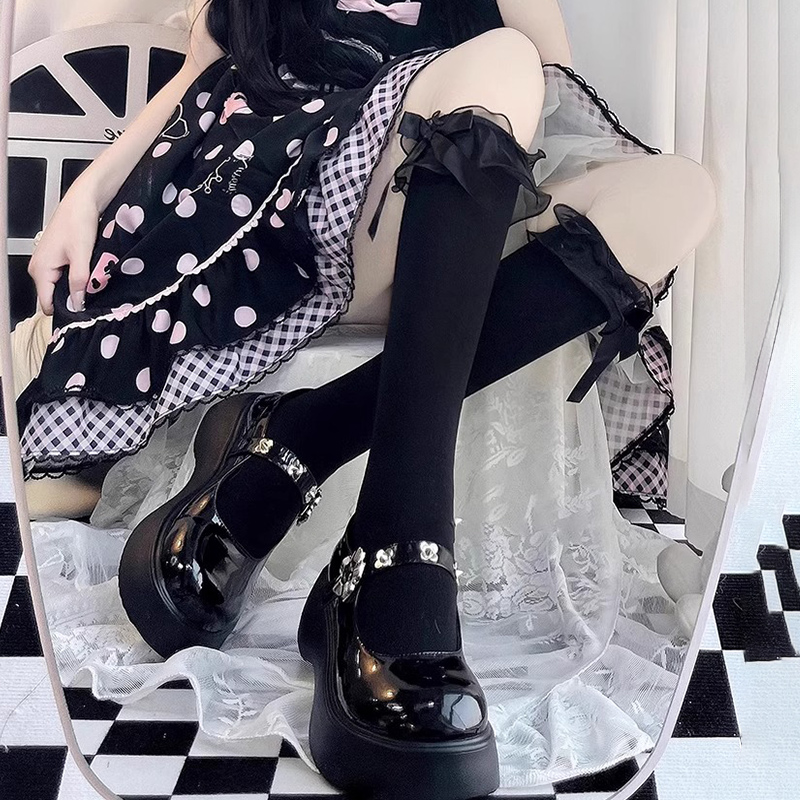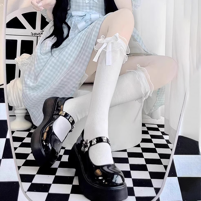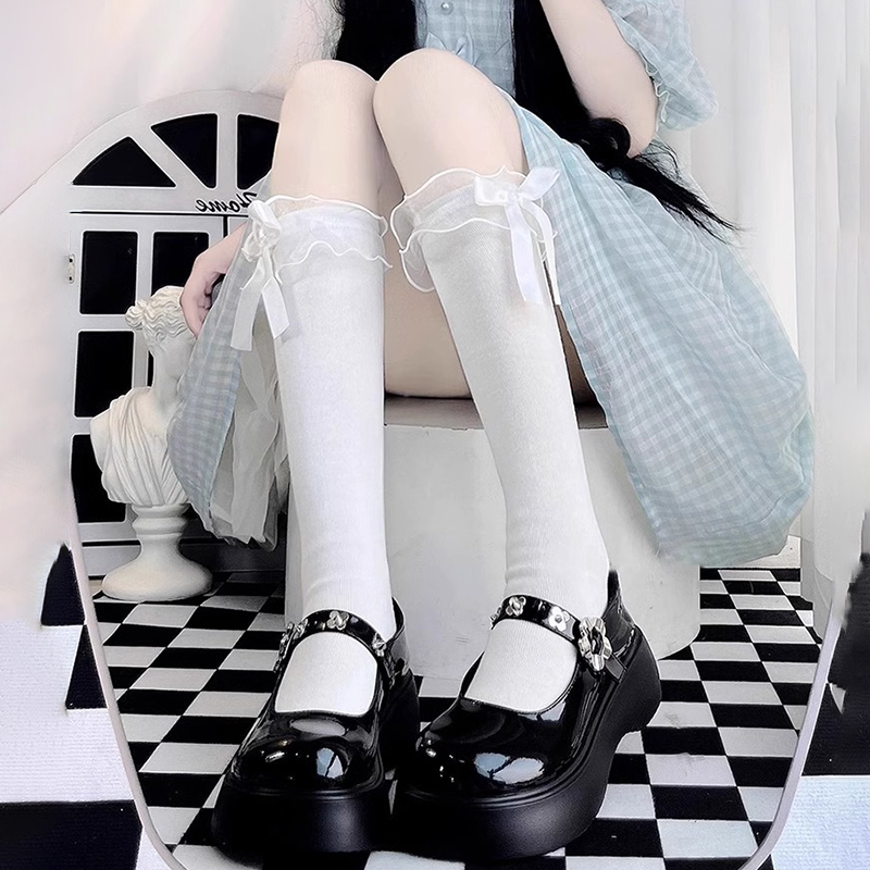 洛丽塔花边袜子女夏季薄款丝袜中筒及膝jk日系蝴蝶结小腿袜长筒袜