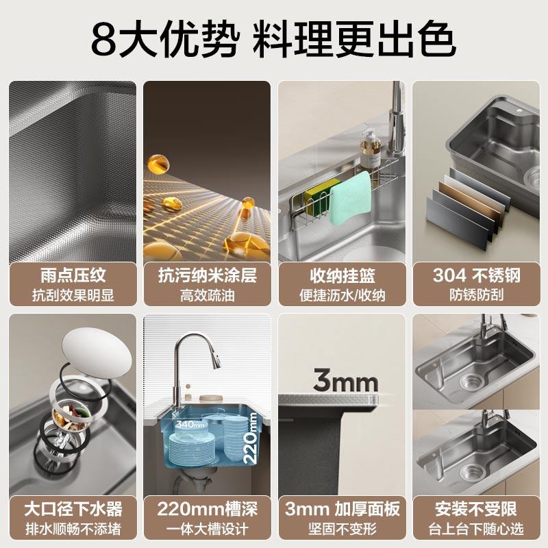 【政府补贴15%】法恩莎加厚大单槽厨房洗菜池手工水槽不锈钢拉伸