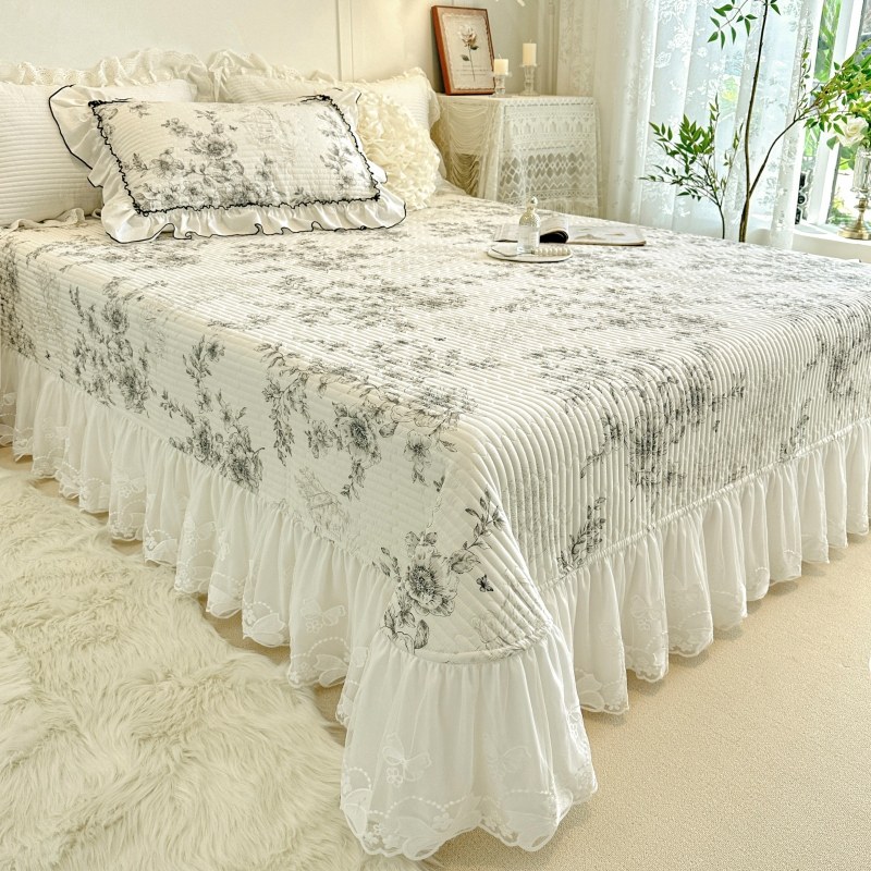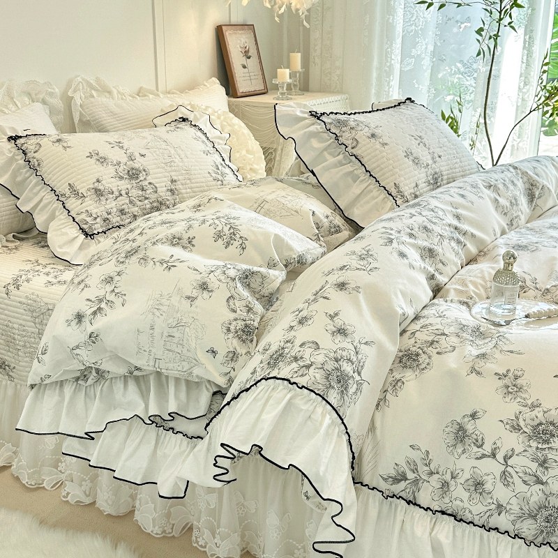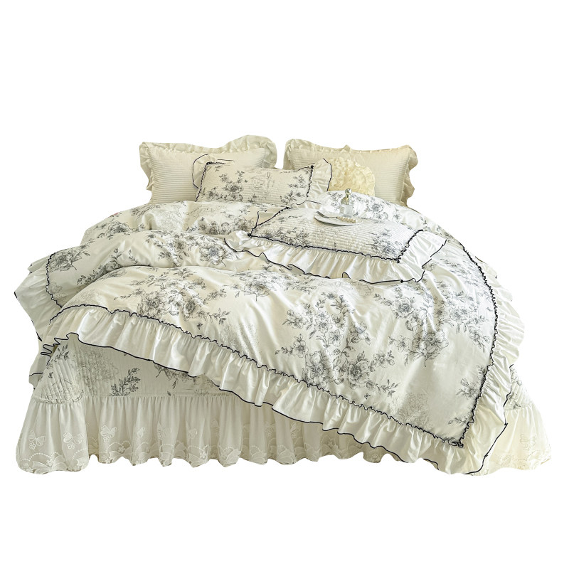 法式轻奢高档复古风全棉床上四件套纯棉荷叶边被套少女心夹棉床盖