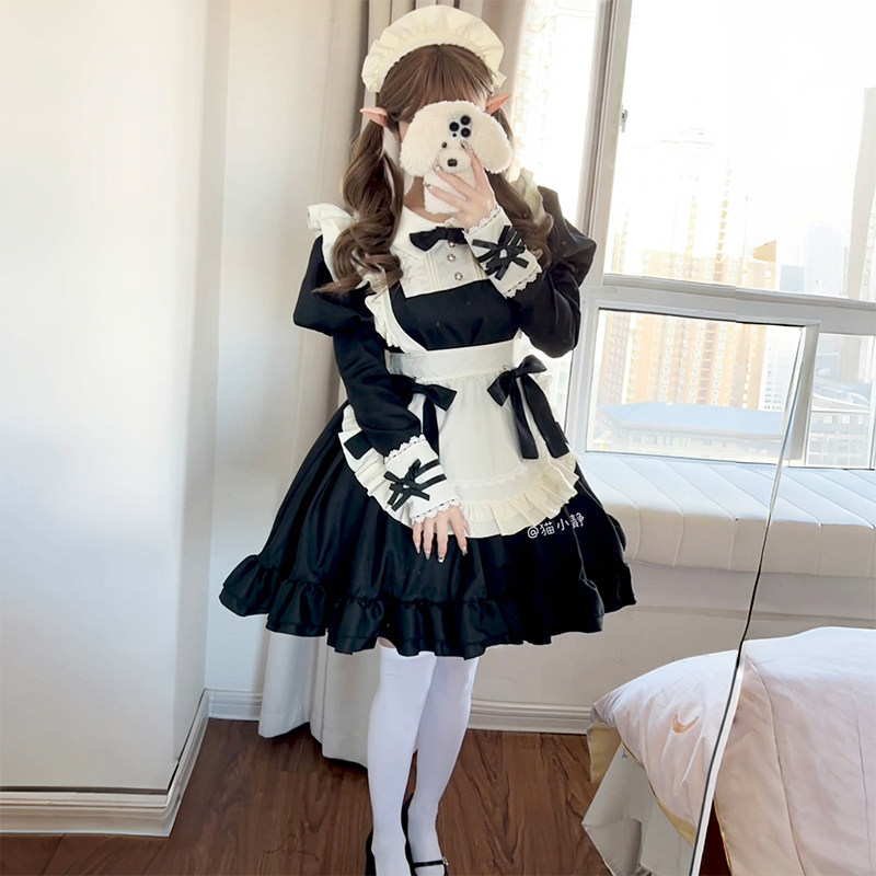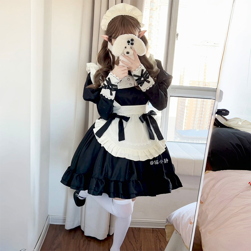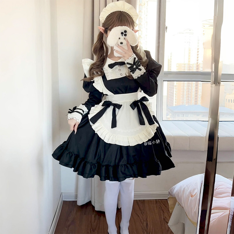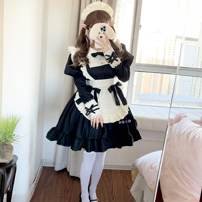 原创洛丽塔小女仆装大码古早lolita裙甜美法式长袖op公主连衣裙