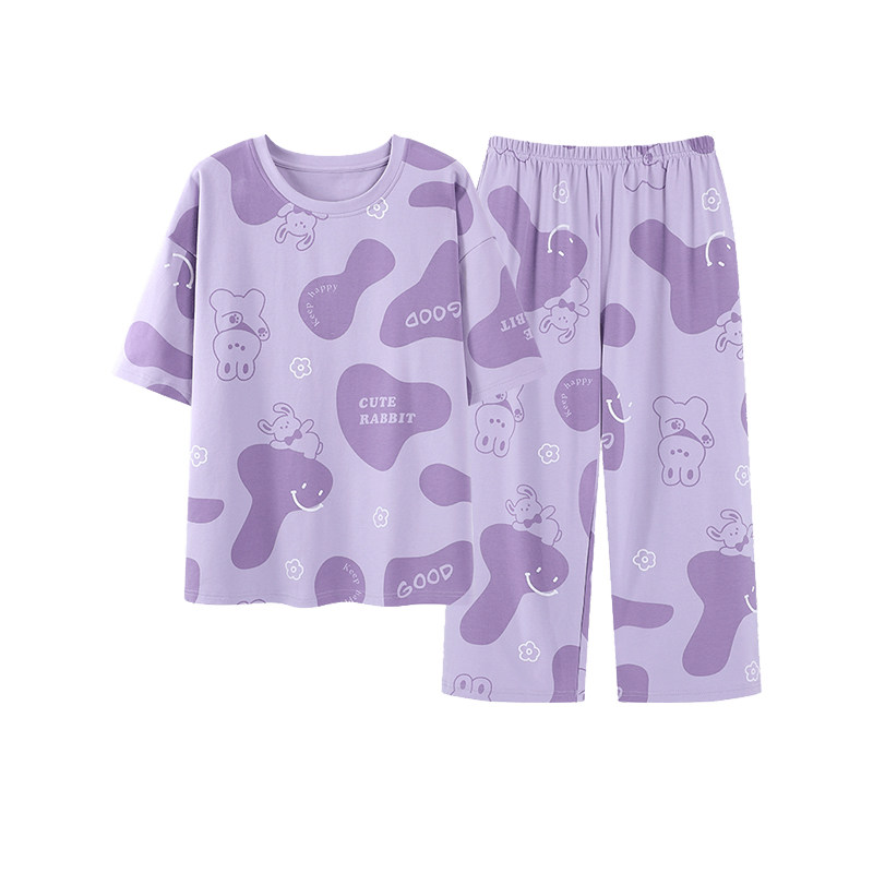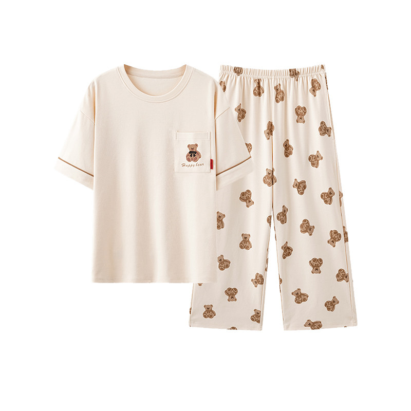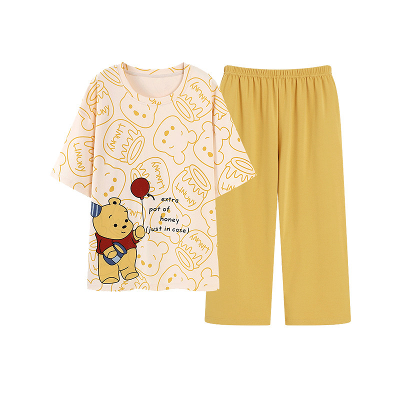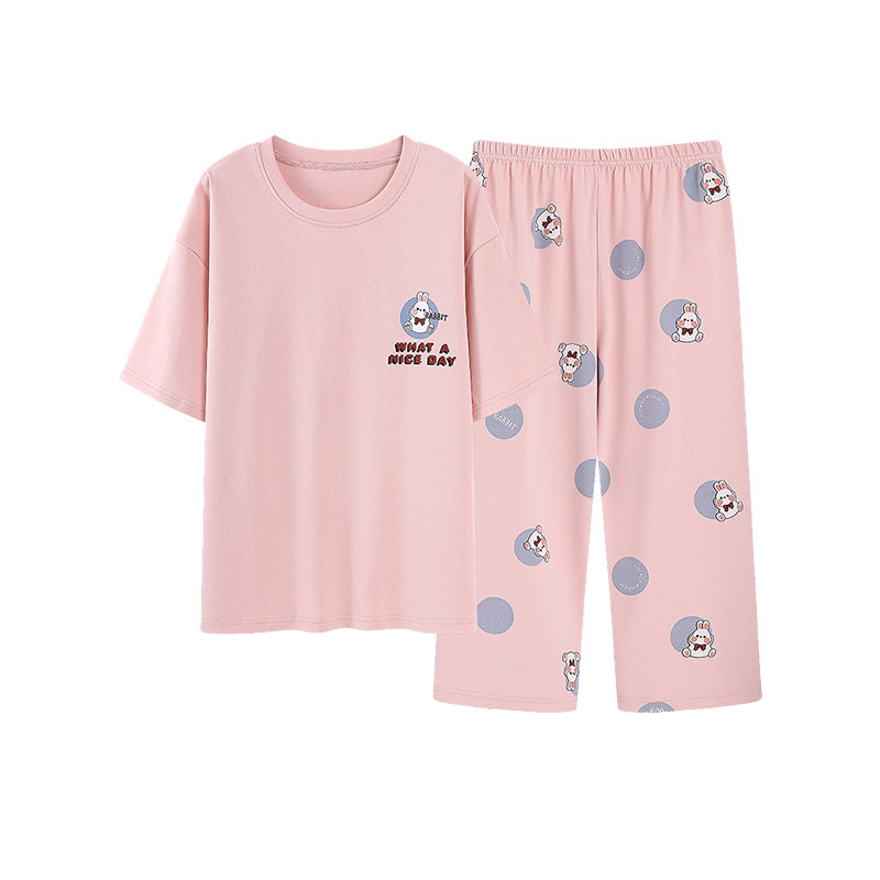 三枪睡衣女士夏季纯棉短袖七分裤全棉夏天薄款卡通甜美家居服套装