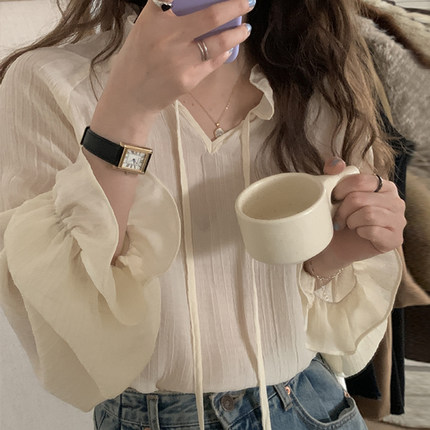 批发宽松气质显瘦洋气长袖雪纺衫