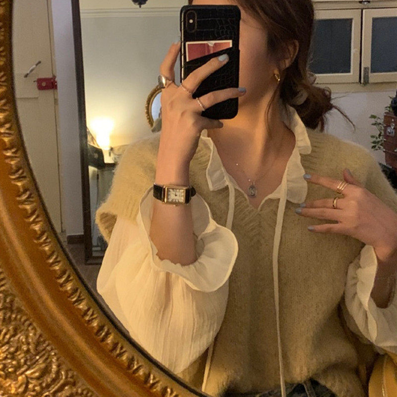秋冬女装批新款发宽松气质打底内搭上衣时尚显瘦洋气长袖雪纺衫潮
