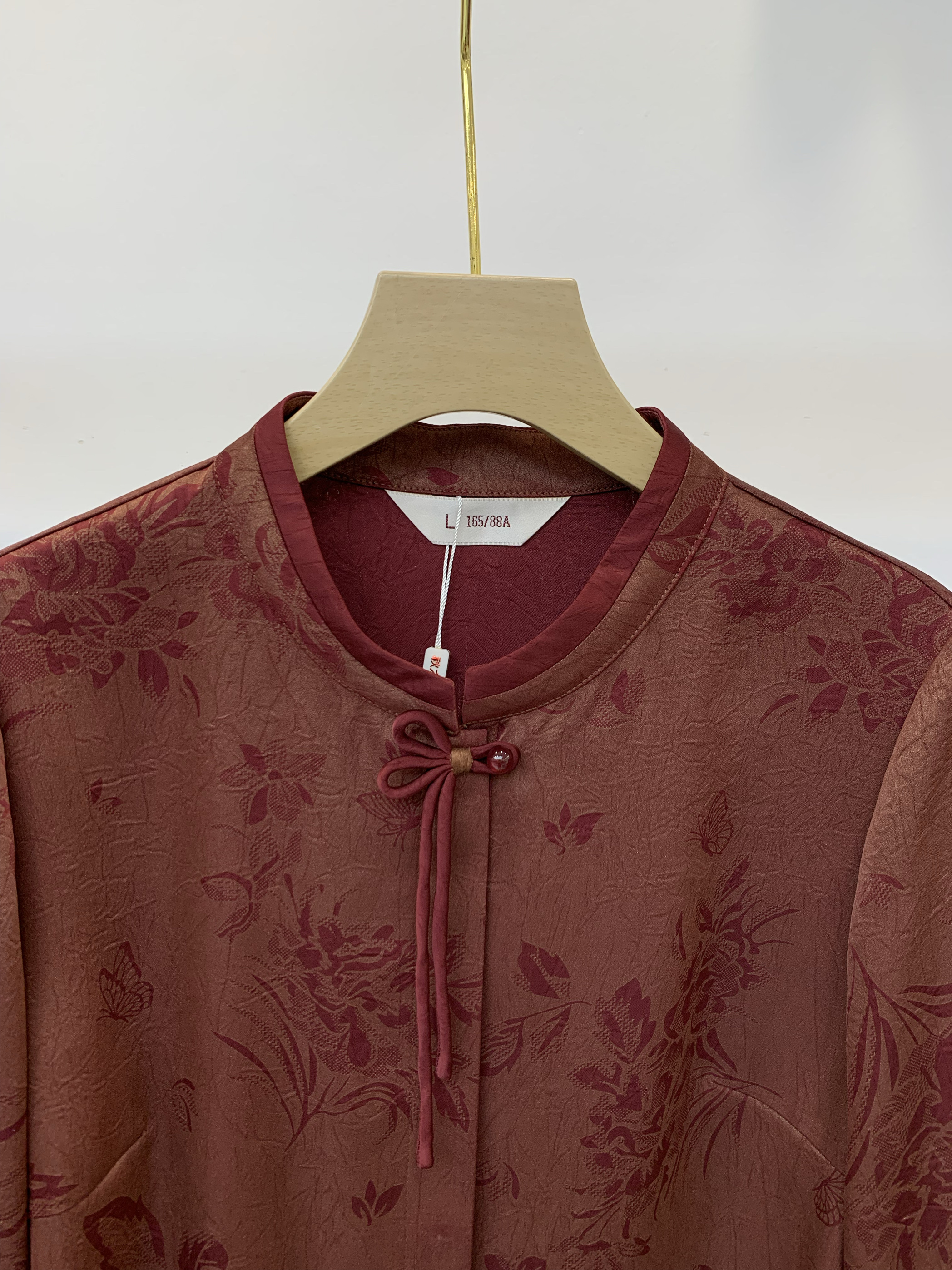 Q25015中老年妈妈春夏季七分袖立领衬衫薄款老年奶奶唐装秋之歌