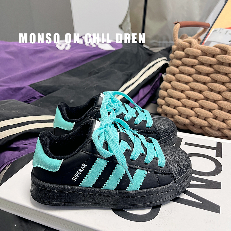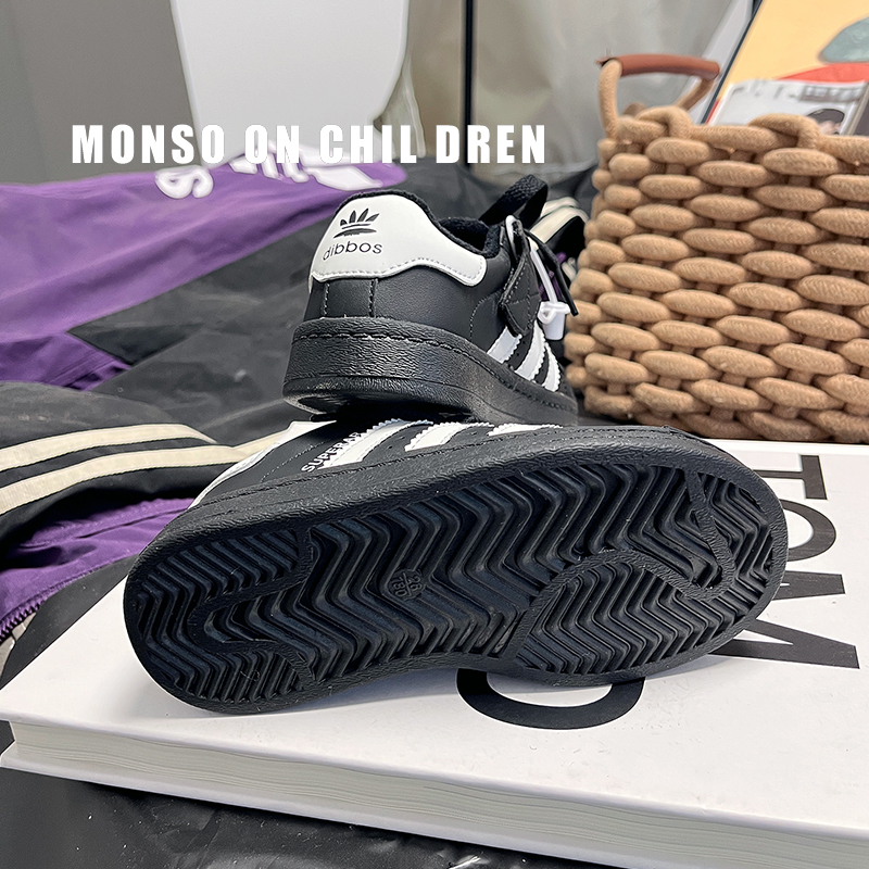 2025秋冬黑色贝壳头板鞋幼儿园三条杠女童运动鞋男童鞋小童宝宝鞋