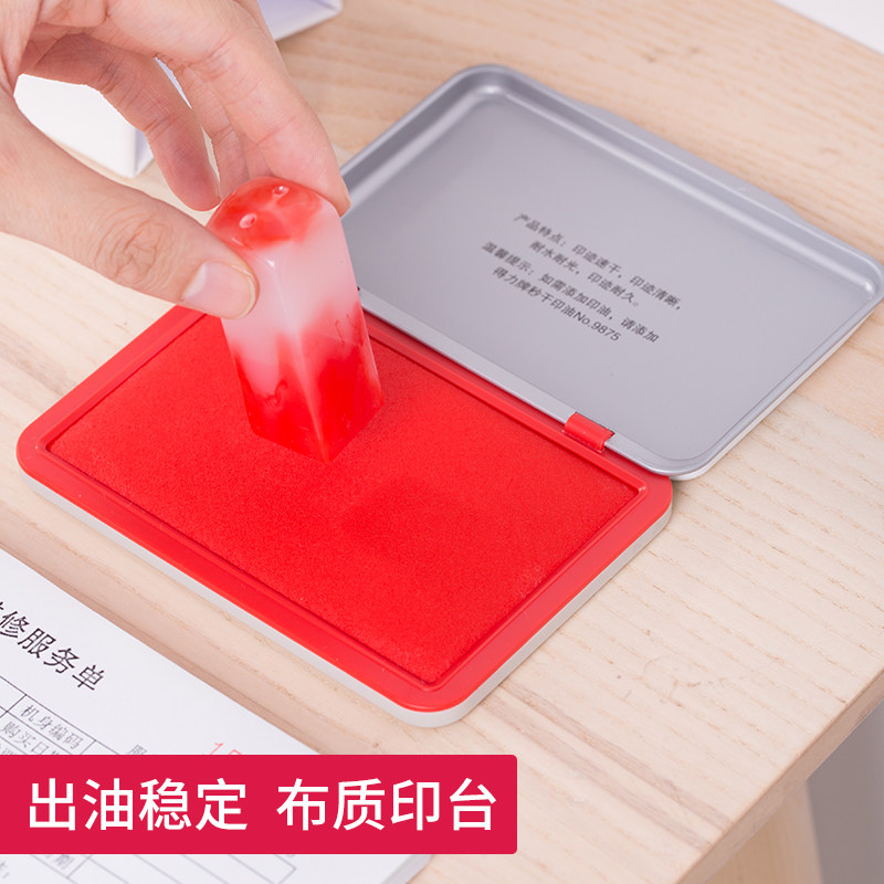 得力红色印台9891【水性】【秒干】印泥盖章台办公财务用品金属外壳红色大中小印章按手印指纹办公用品