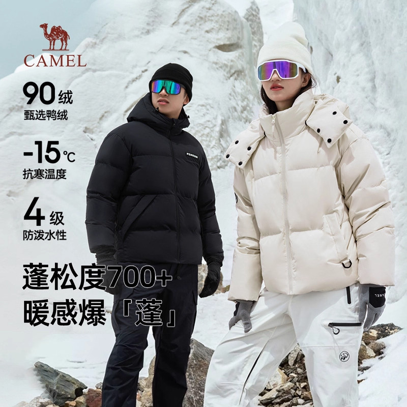 企鹅户外短款热能羽绒服女可拆卸帽子防风御寒面包服加厚外套