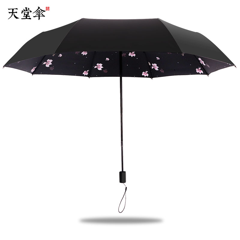 天堂伞折叠太阳伞女神小清新两用晴雨伞女防晒防紫外线黑胶遮阳伞