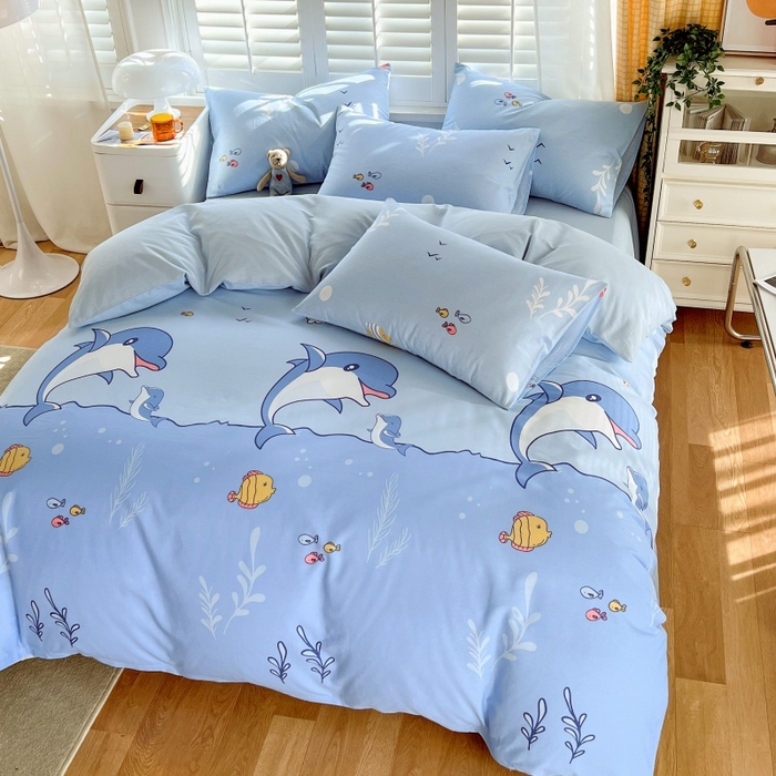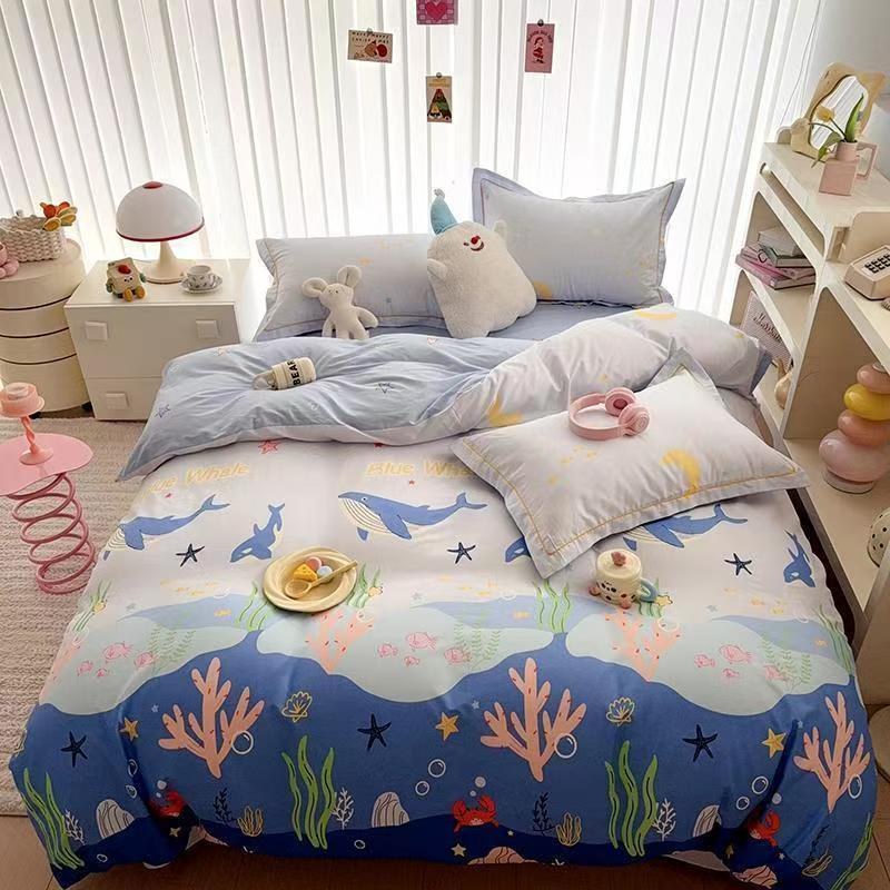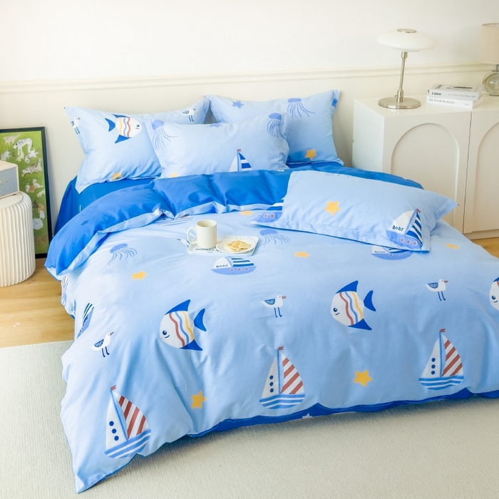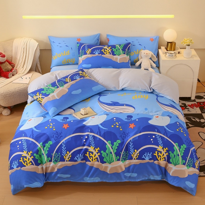 纯棉四件套卡通海洋床笠床单被套海底世界男孩男童儿童房小鱼床品