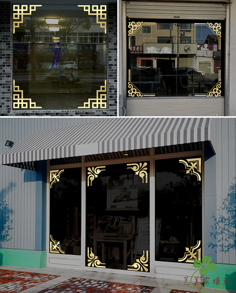 中式对角墙贴纸金色边框贴画阳台店铺玻璃门创意边角装饰画框角花