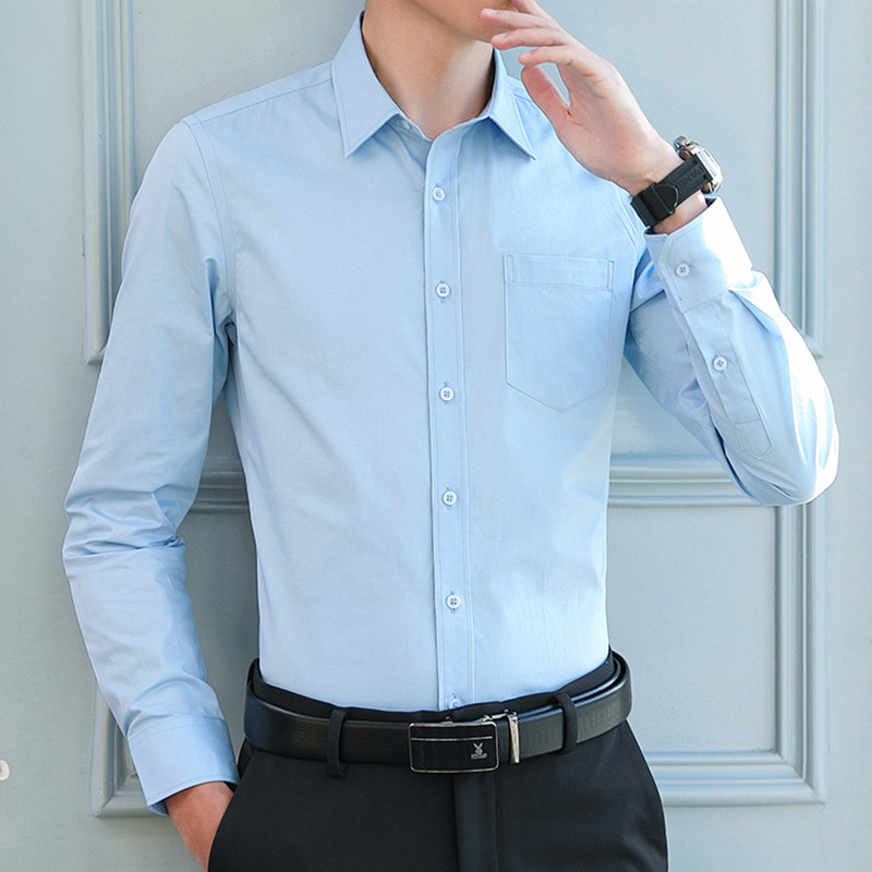 长袖衬衫男青年商务休闲职业工装粉色白衬衣新郎结婚伴郎兄弟团潮