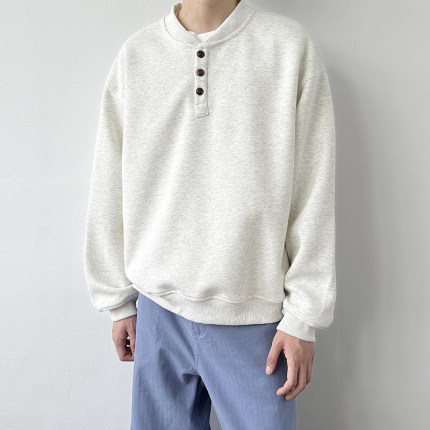 24LINE秋季重磅亨利领卫衣男款无帽上衣2025新款简约百搭休闲外套