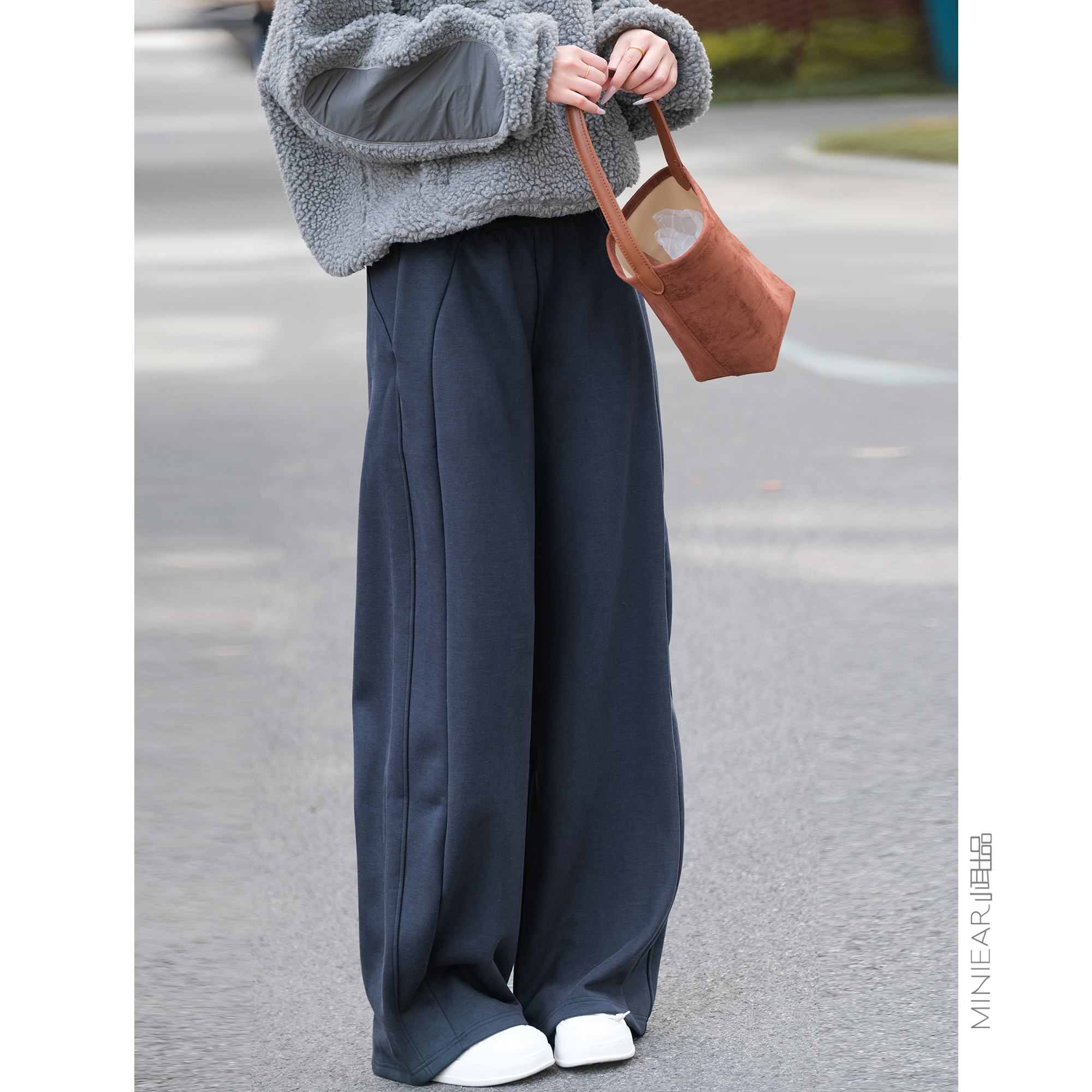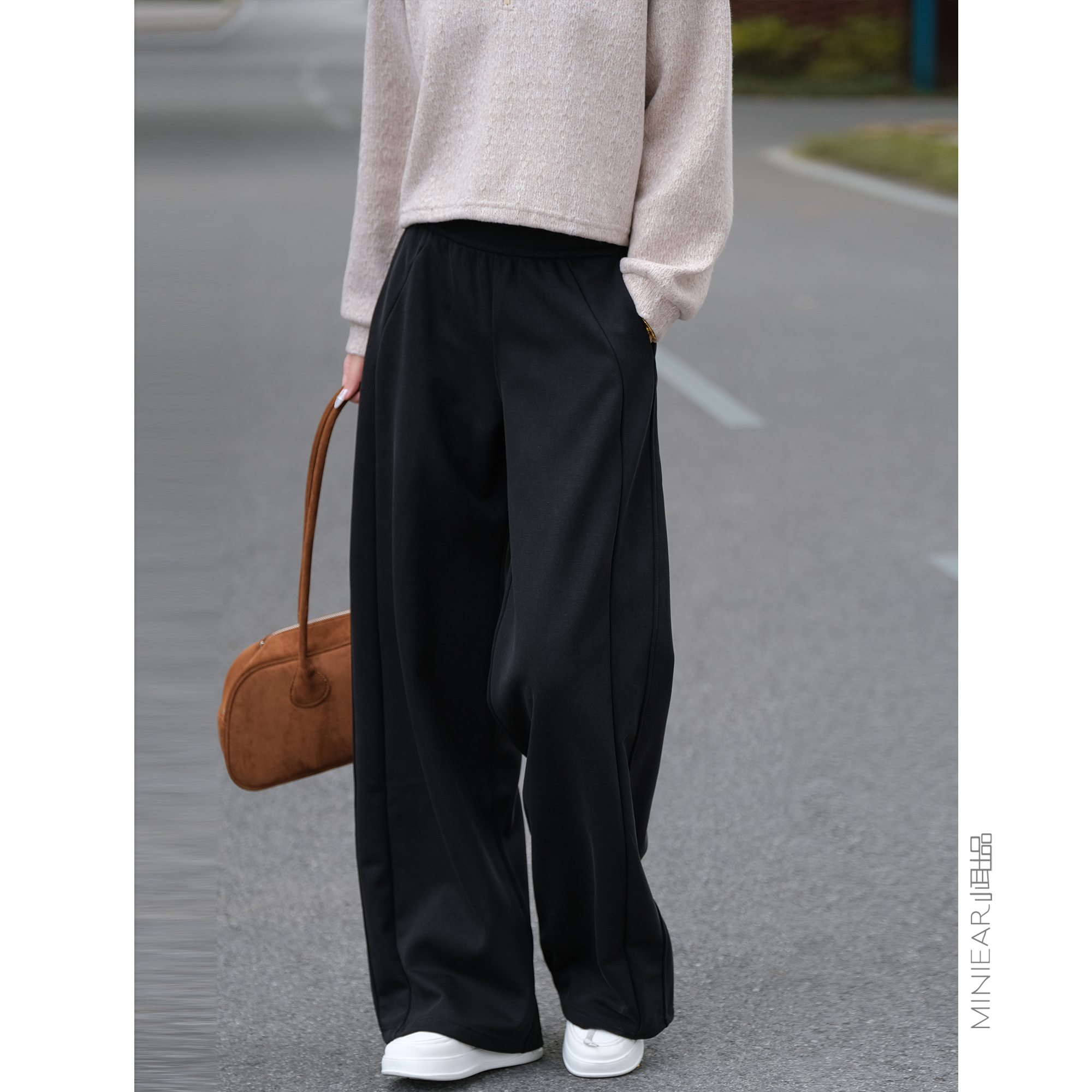 小耳出品【铜氨丝手感】复古休闲显瘦拼接休闲裤宽松运动阔腿裤女