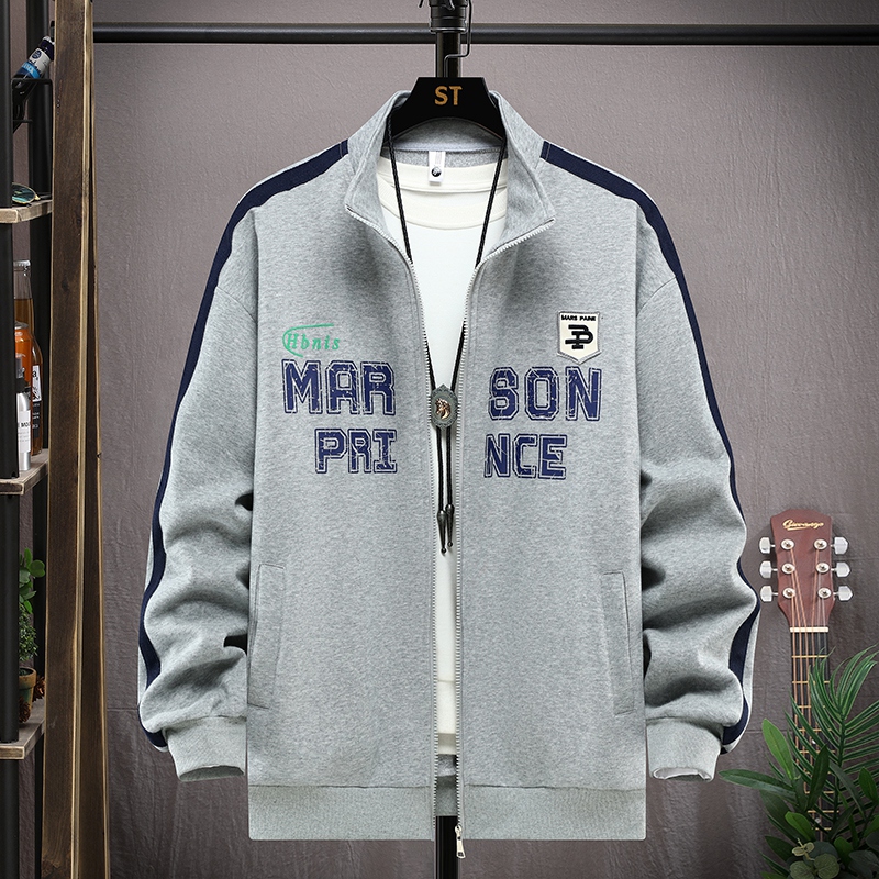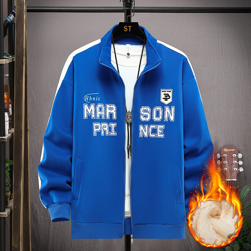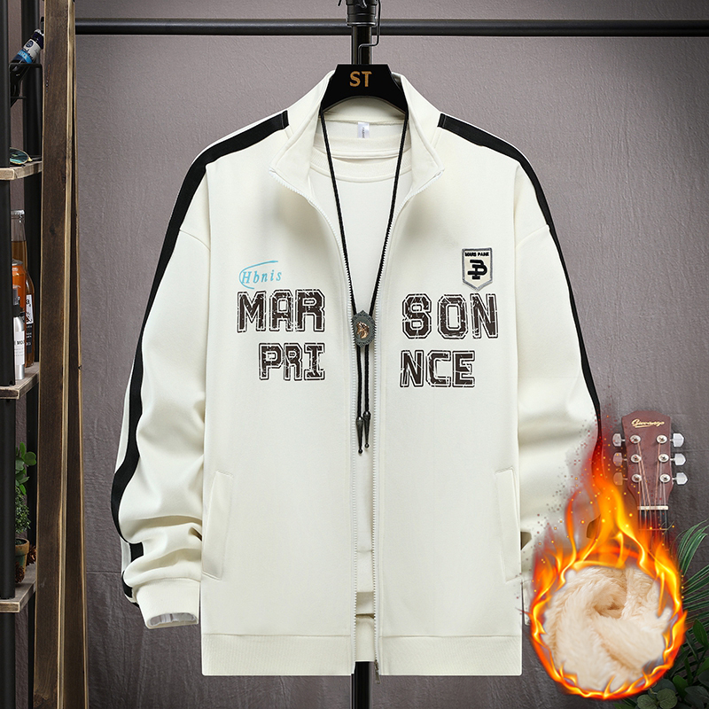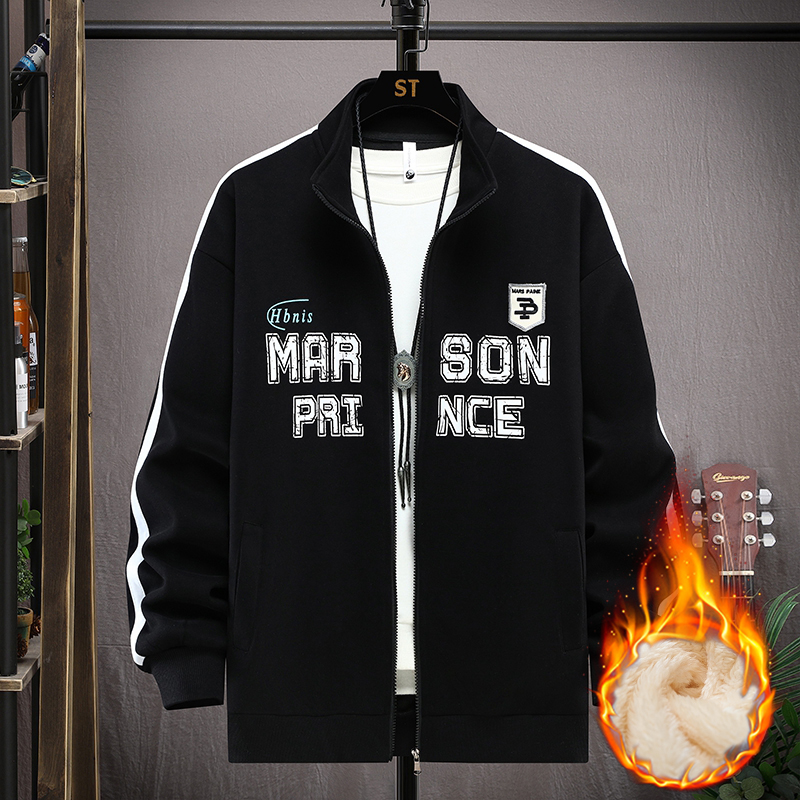 加绒立领夹克男装开衫秋冬装