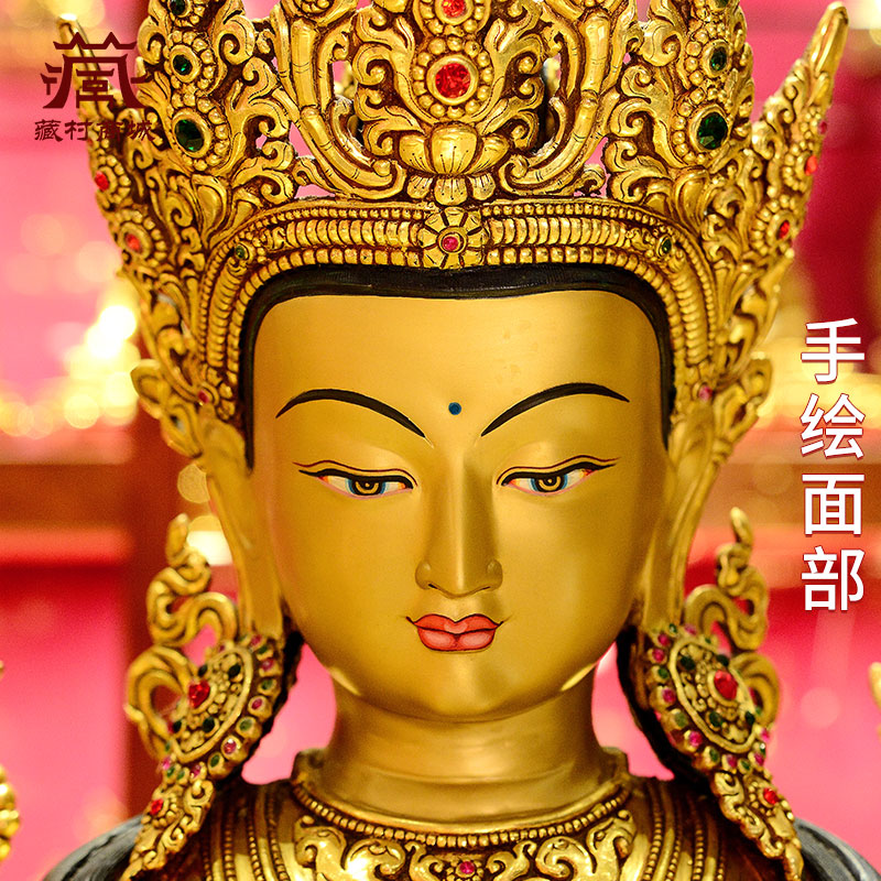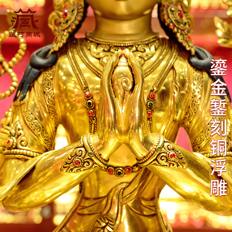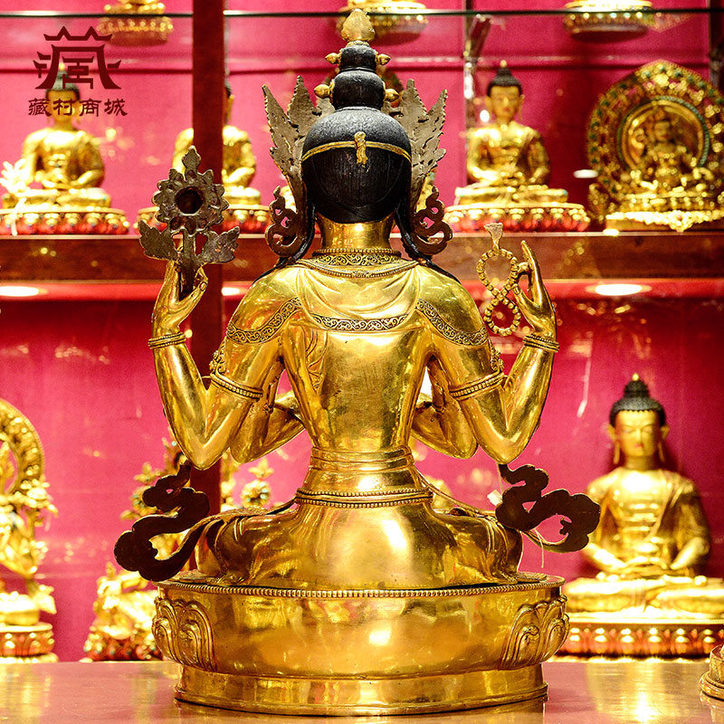 尼泊尔进口《四臂观音》释迦族手工制作《观音菩萨》铜像摆件