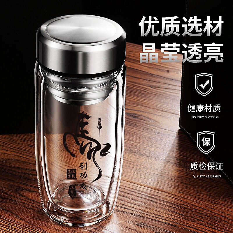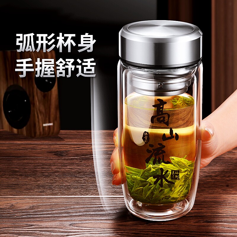 大容量水杯男高档双层玻璃杯车载鹅蛋杯防爆耐高温便携泡茶杯定制