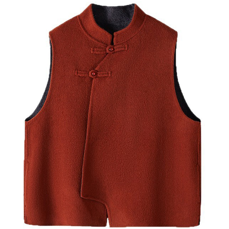 新中国风双面羊毛马甲女2025秋冬新款立领盘扣毛呢背心马甲上衣潮