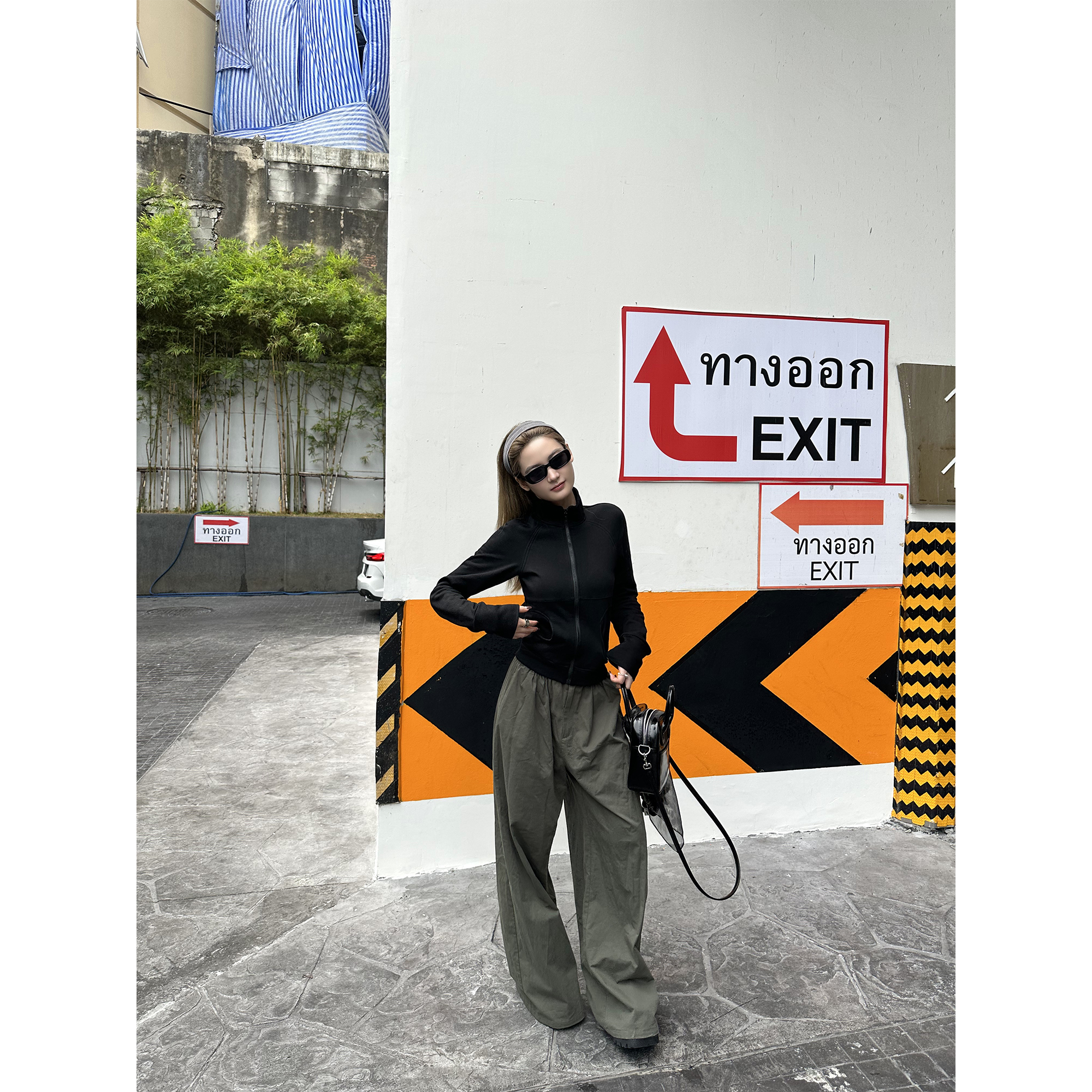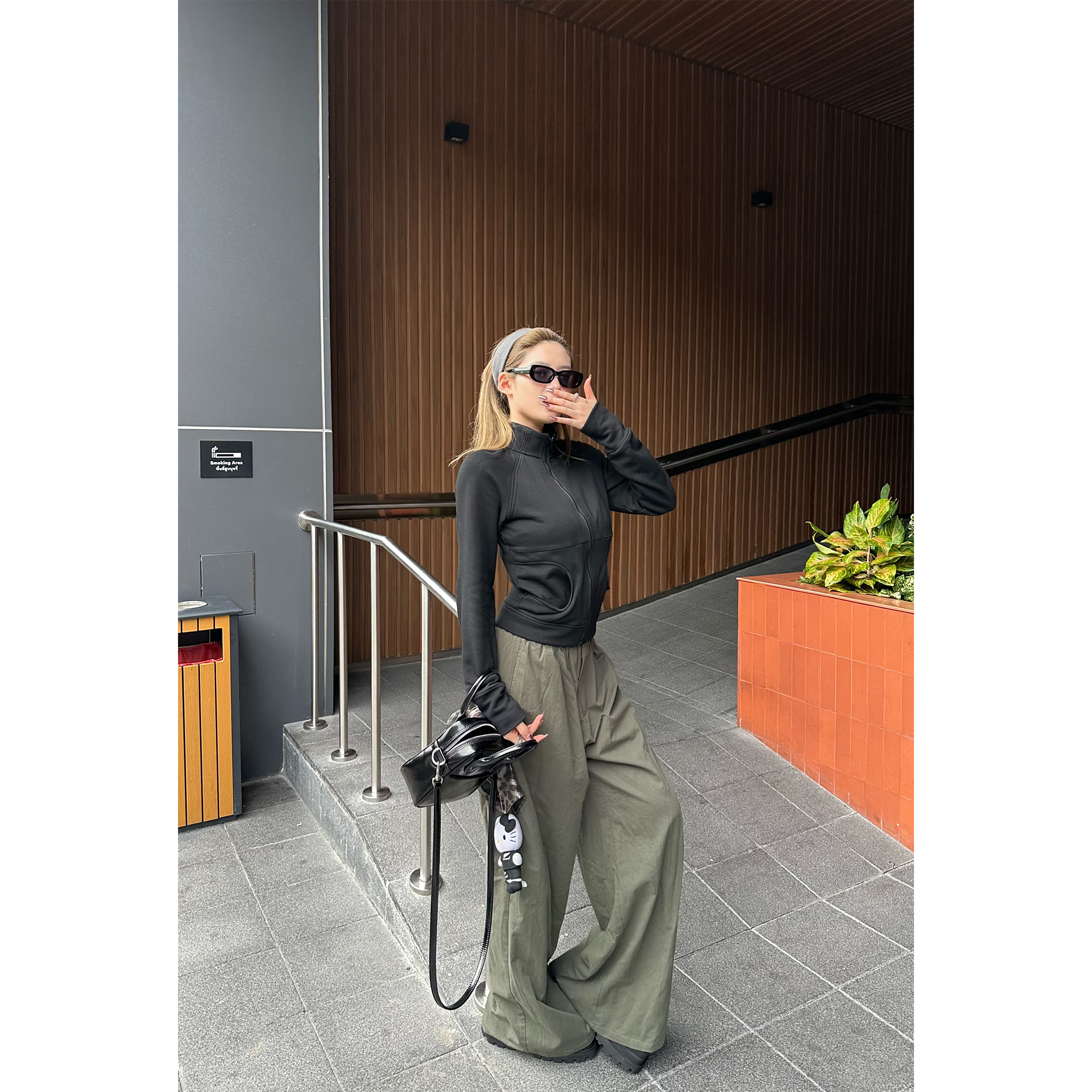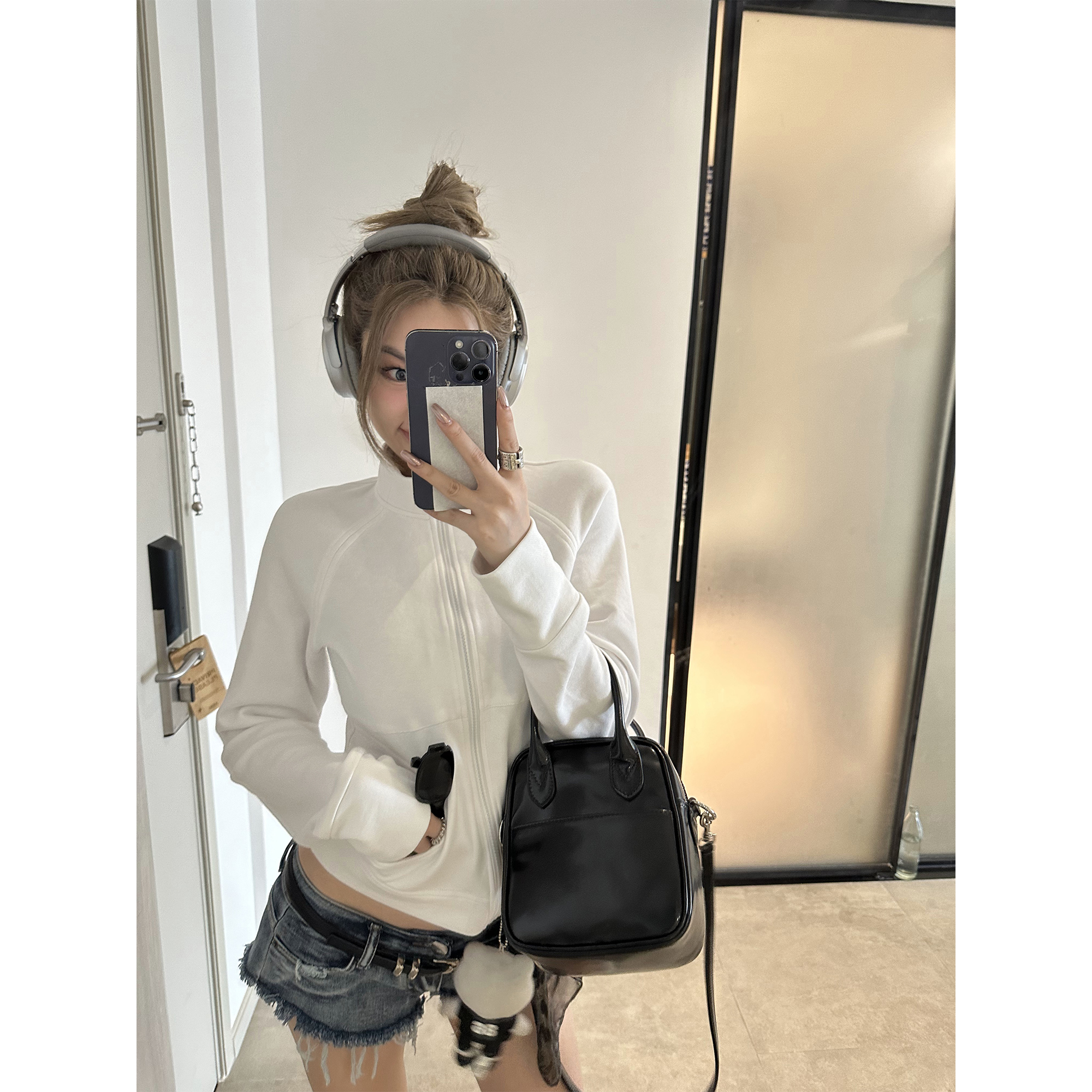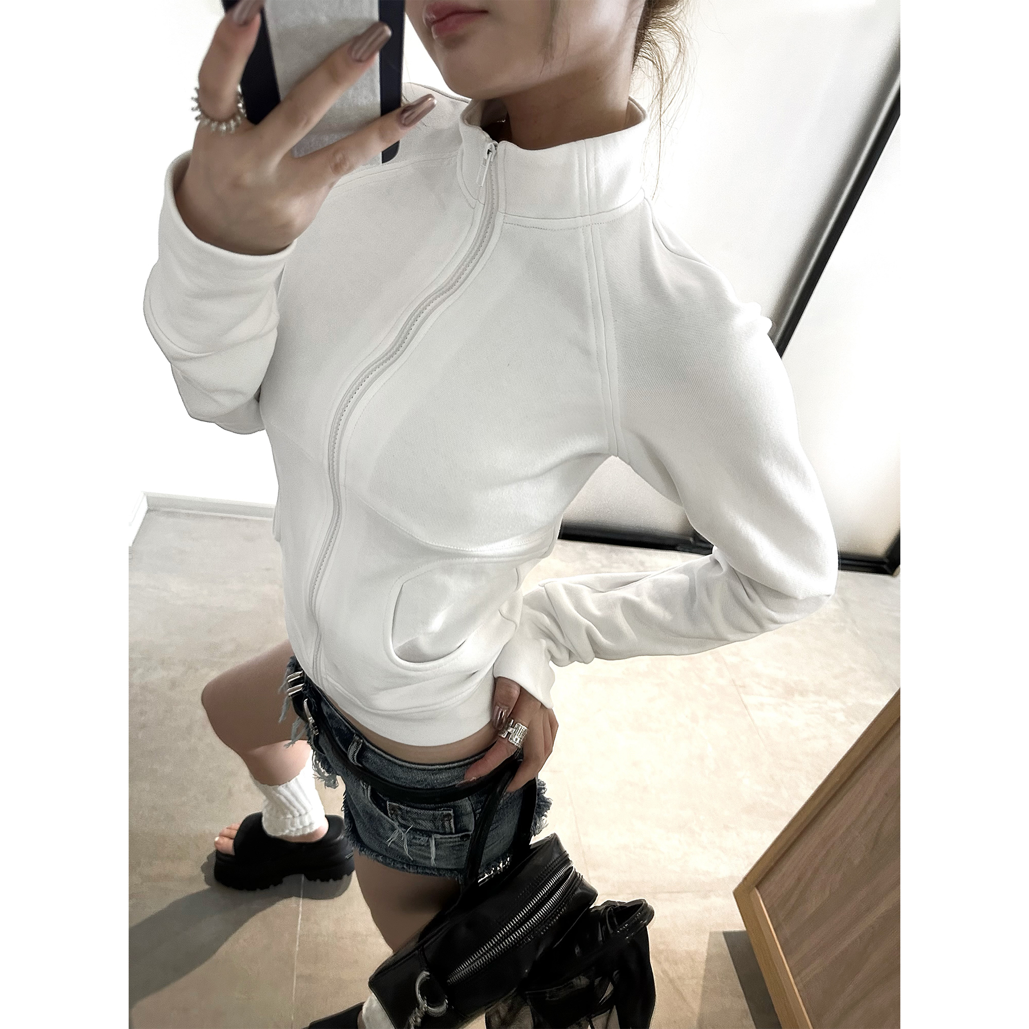 Xinlei Lin“bella同款”双色短款百搭长袖拉链卫衣外套女春夏