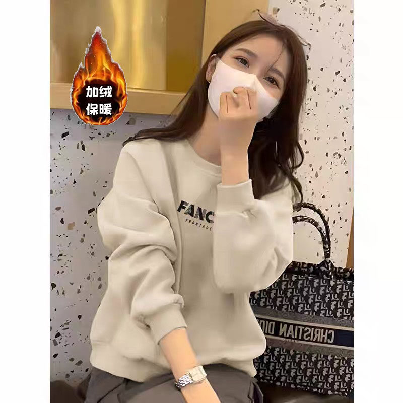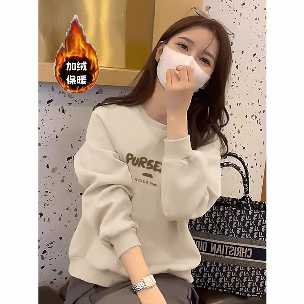纯棉正肩卫衣女套头加绒加厚保暖宽松显瘦休闲百搭春秋冬长袖上衣