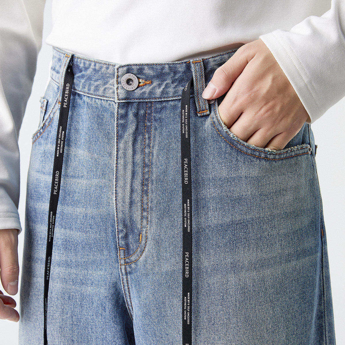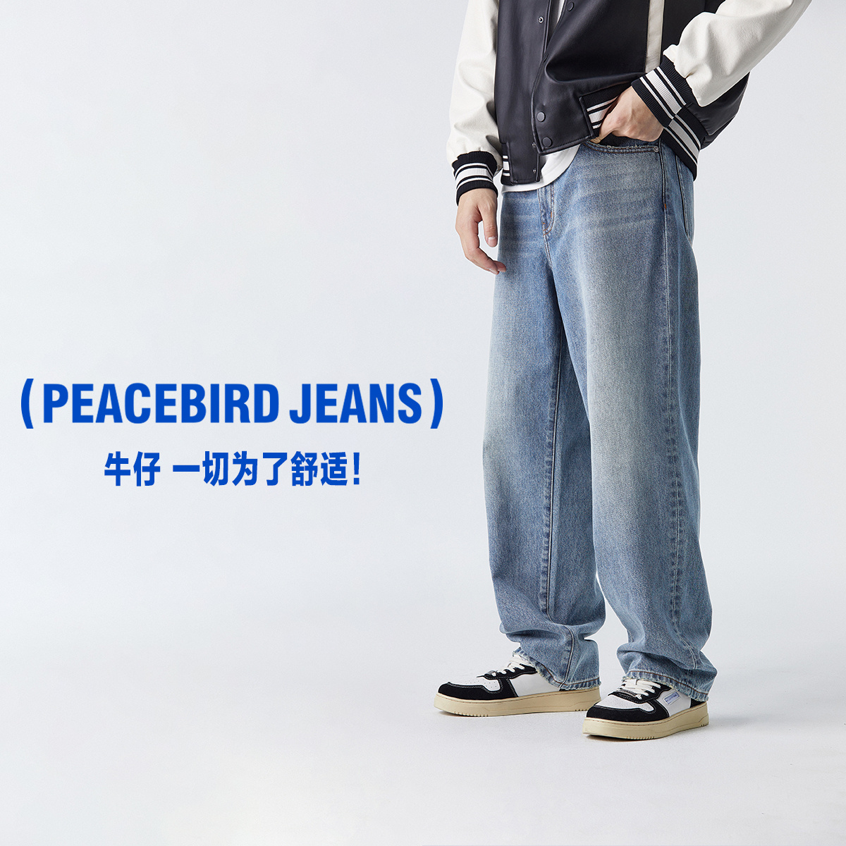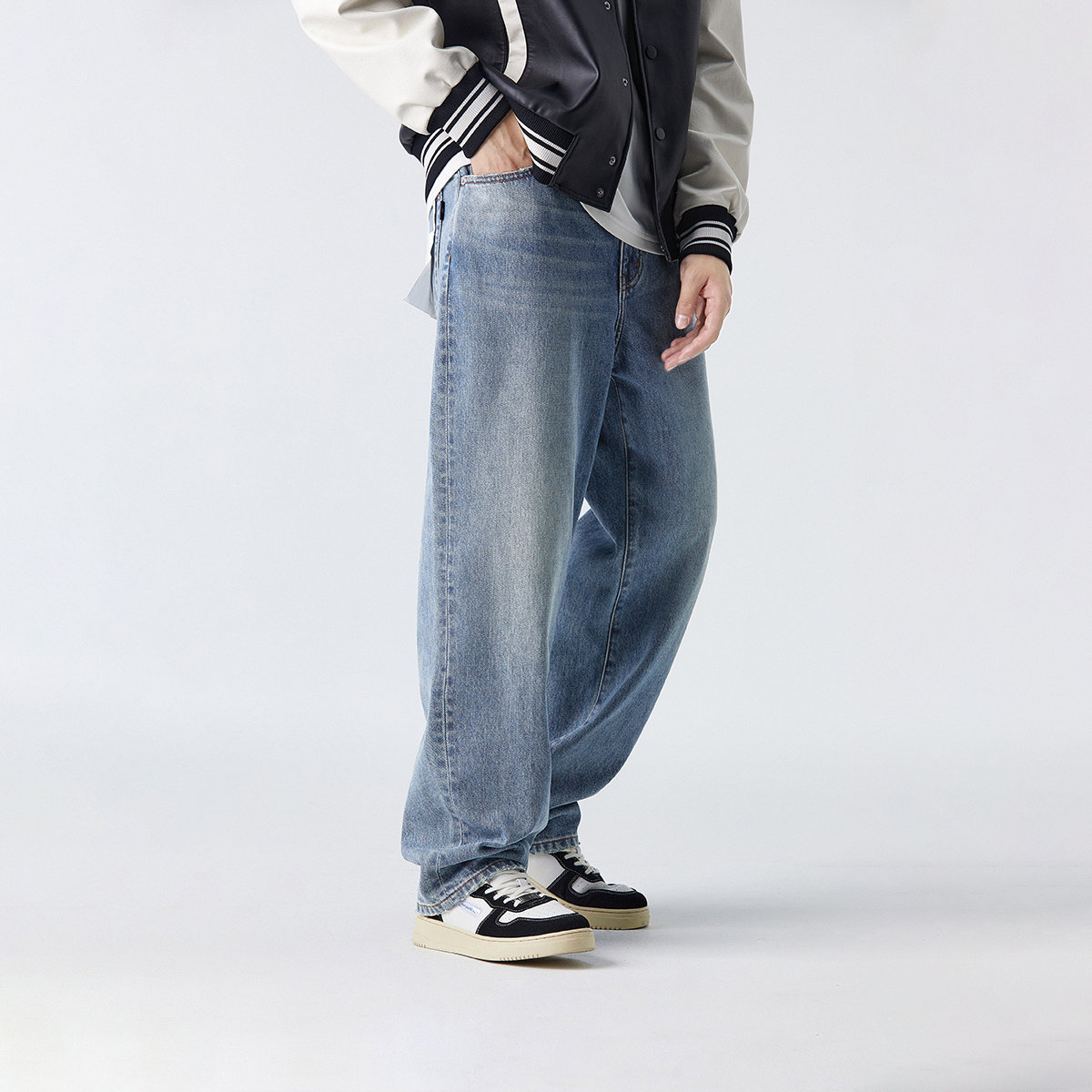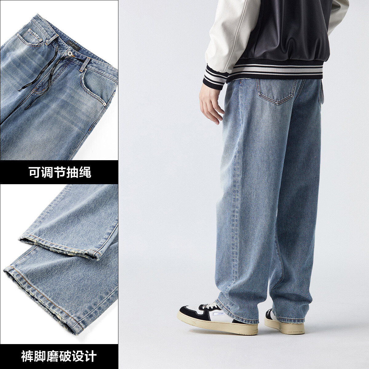 太平鸟男装阔腿牛仔裤男新款美式复古水洗裤子休闲裤潮BWHAD1624