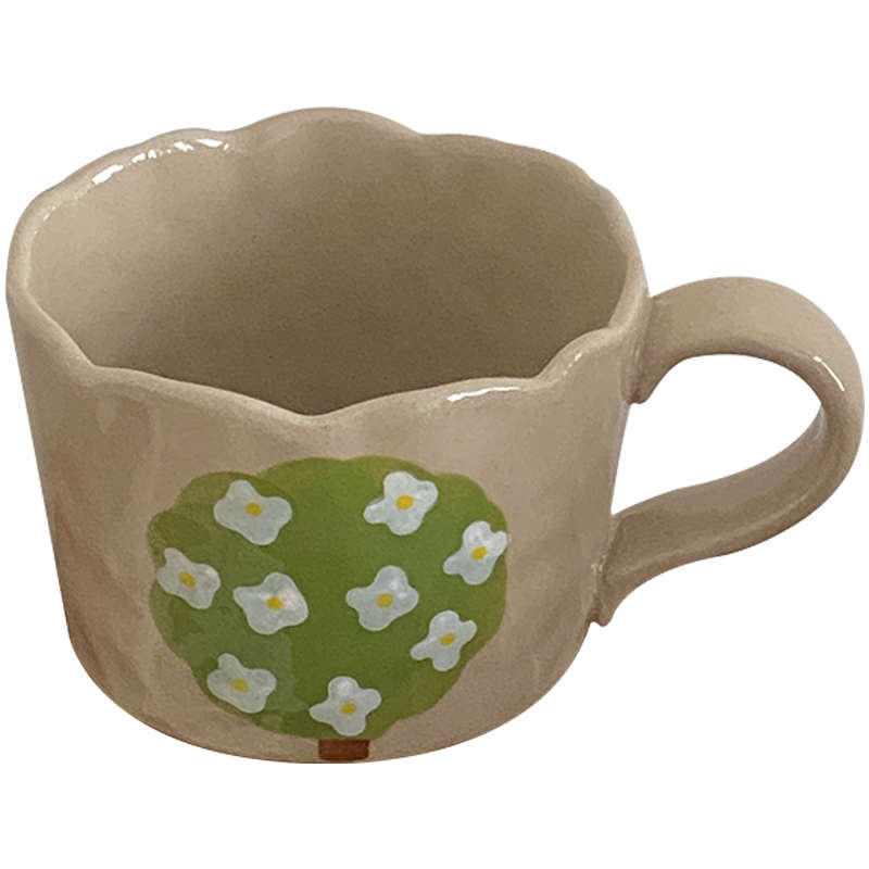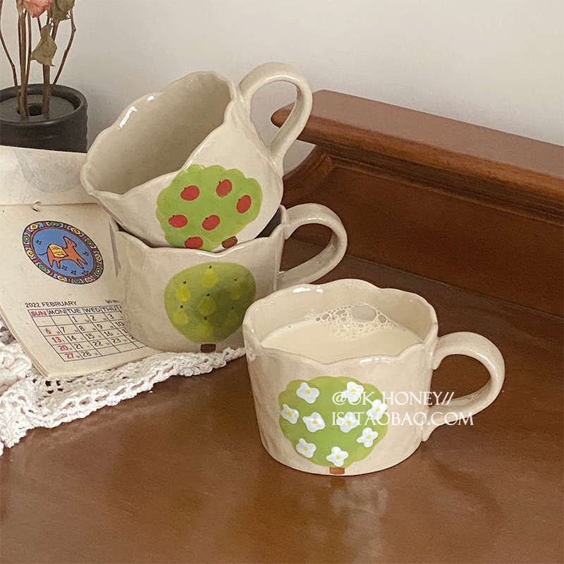 创意手绘釉下彩粗陶不规则马克杯日常喝水咖啡牛奶陶瓷杯子下午茶