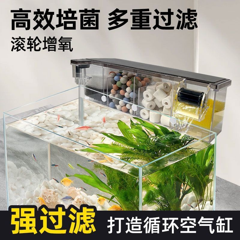 过滤盒鱼缸过滤器小鱼缸壁挂净水循环三合一滴流盒低水位龟缸过滤
