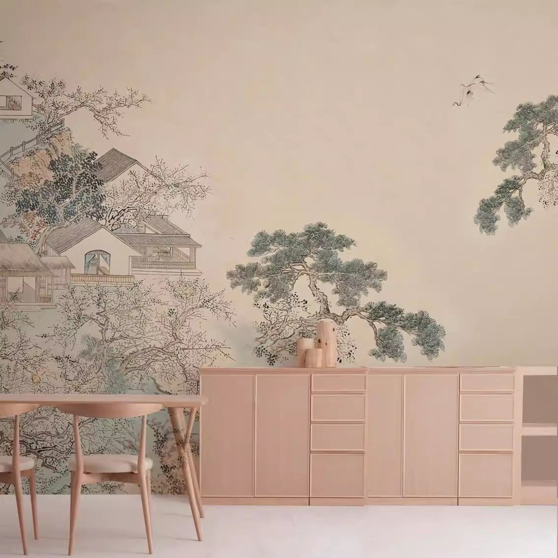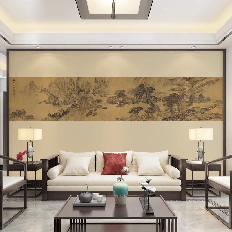 宋式美学山水墨画卧室客厅电视沙发背景墙壁布民宿墙布