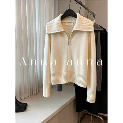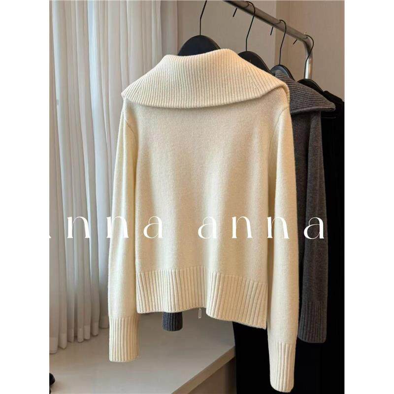 怒推!外贸单品质,大翻领羊绒毛衣外套女冬季慵懒风显瘦针织开衫