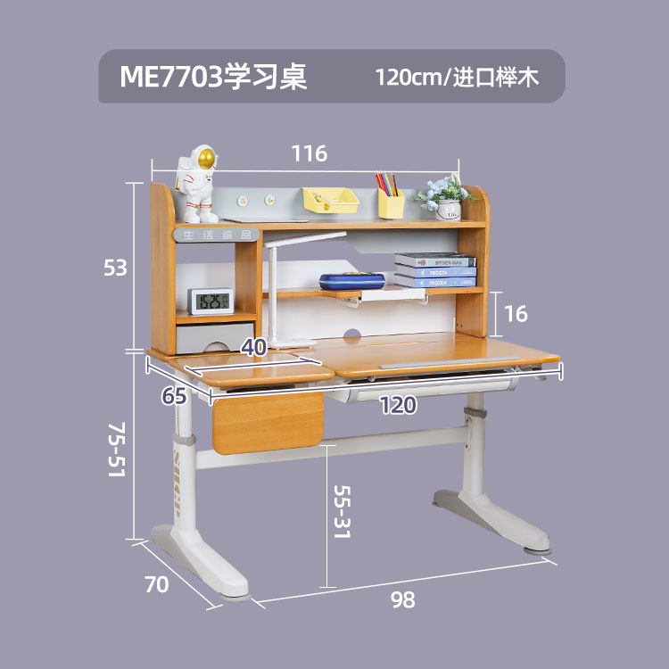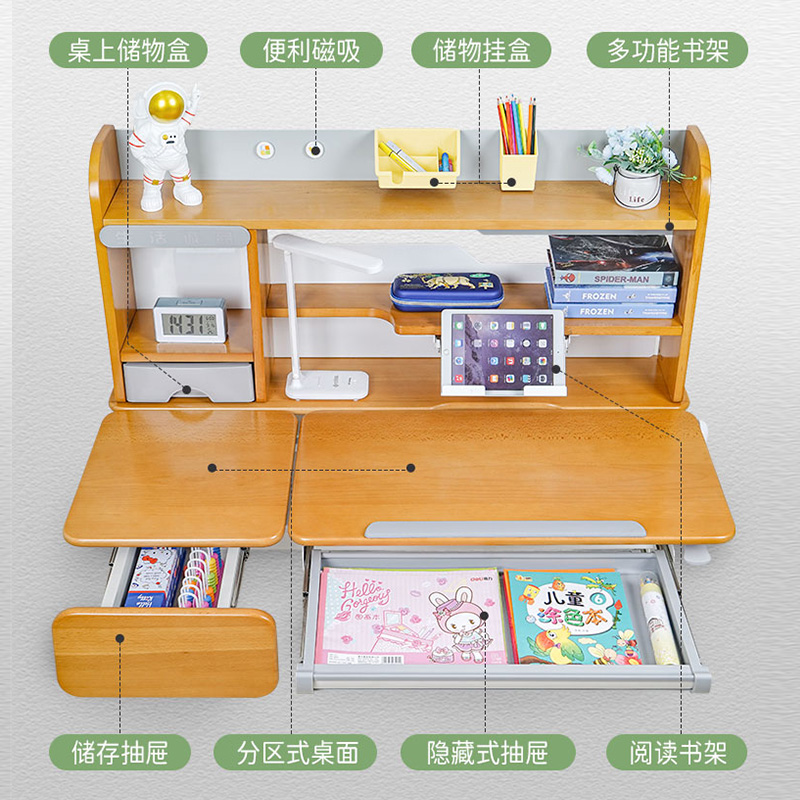 生活诚品儿童学习桌 纯实木书桌 可升降写字桌小学生作业桌课桌椅
