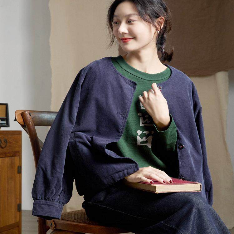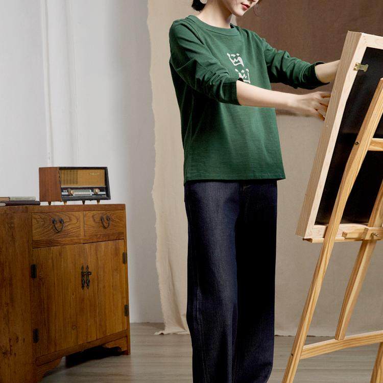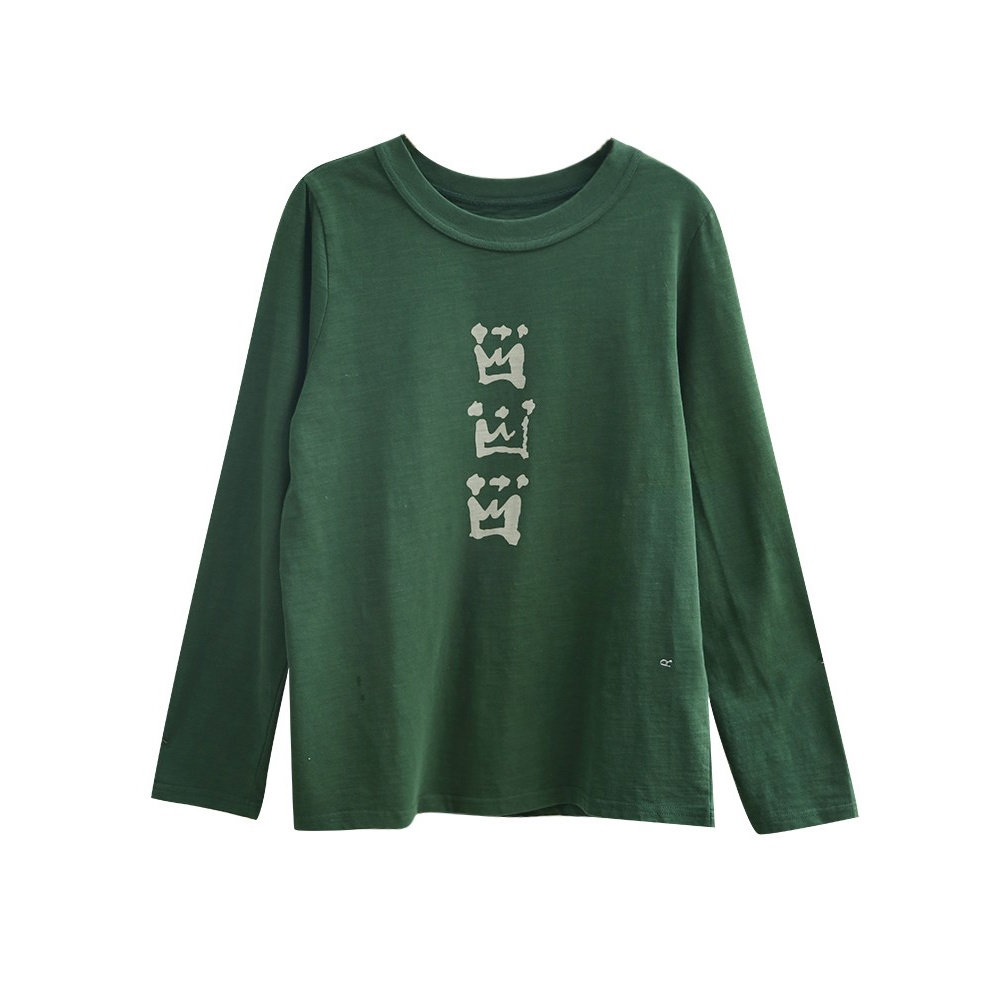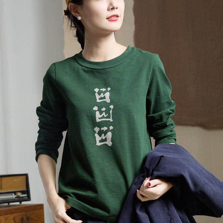 谷家 竹节棉皇冠印花正肩显瘦长袖T恤女 春秋季全棉圆领百搭上衣