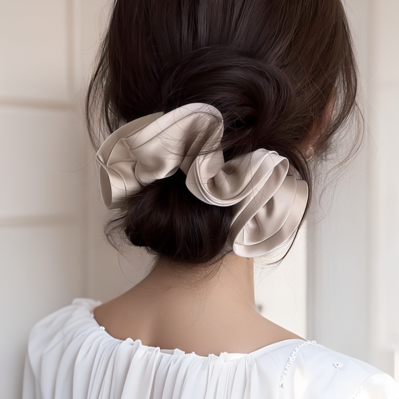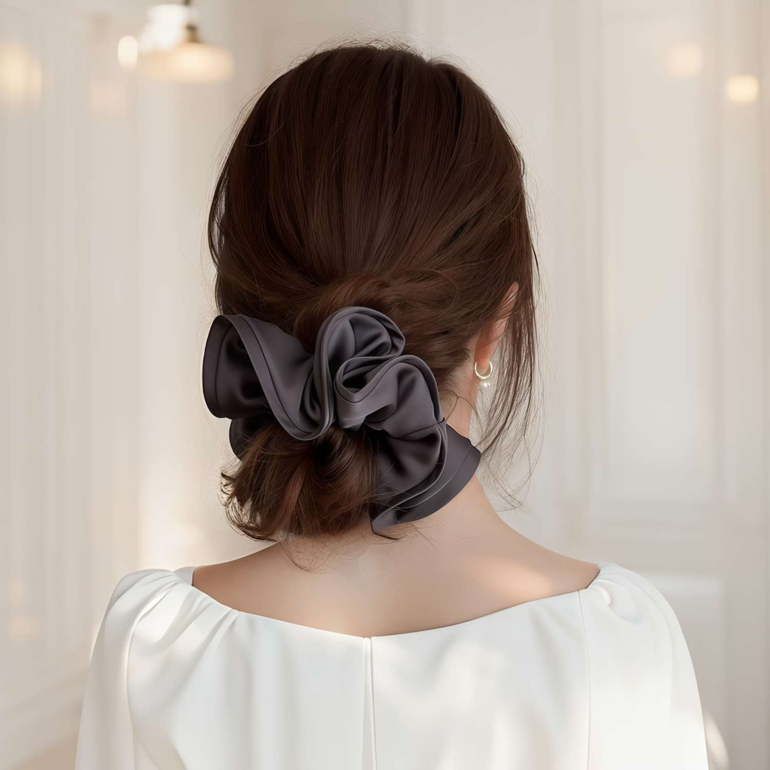 黑色大肠发圈女缎面头绳2025新款扎低丸子头皮筋肥肠发绳女头花